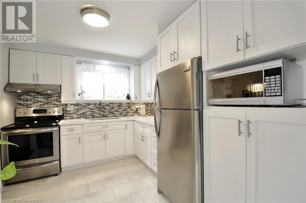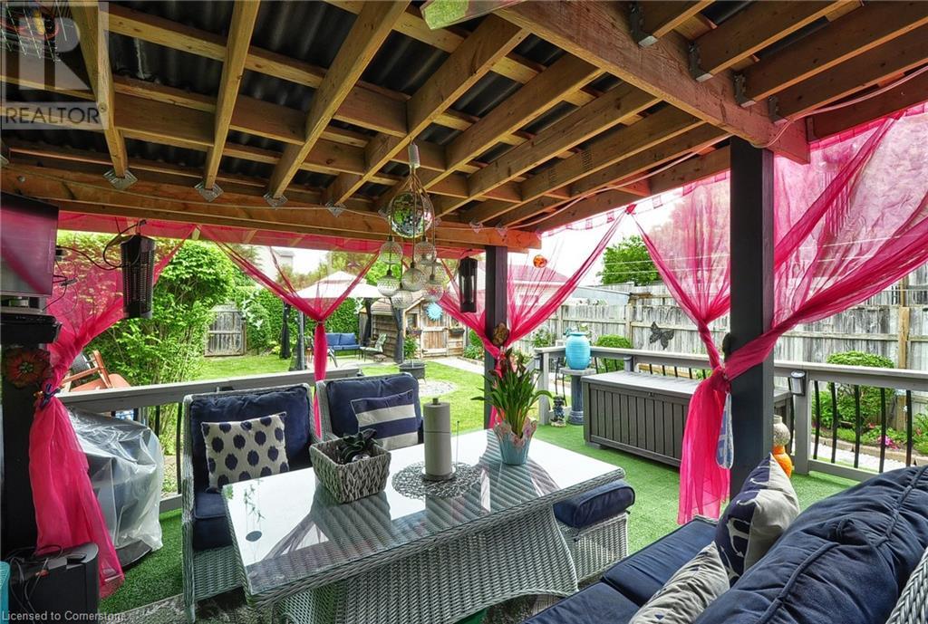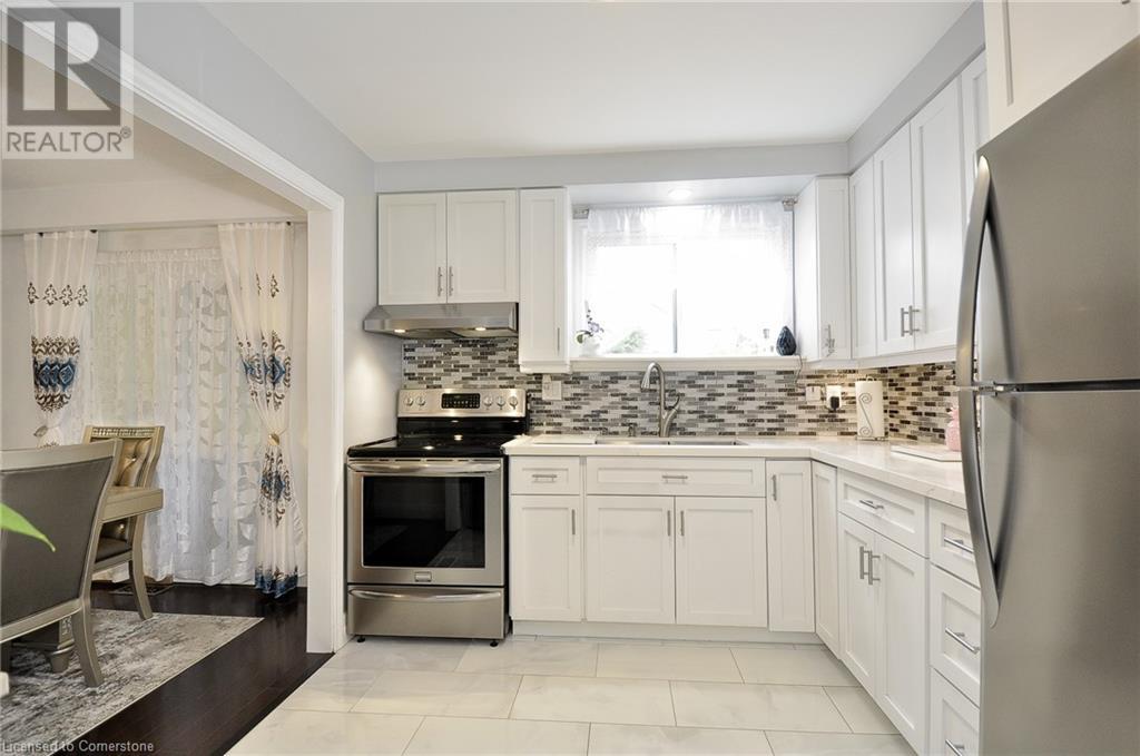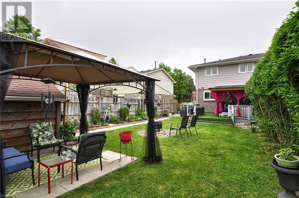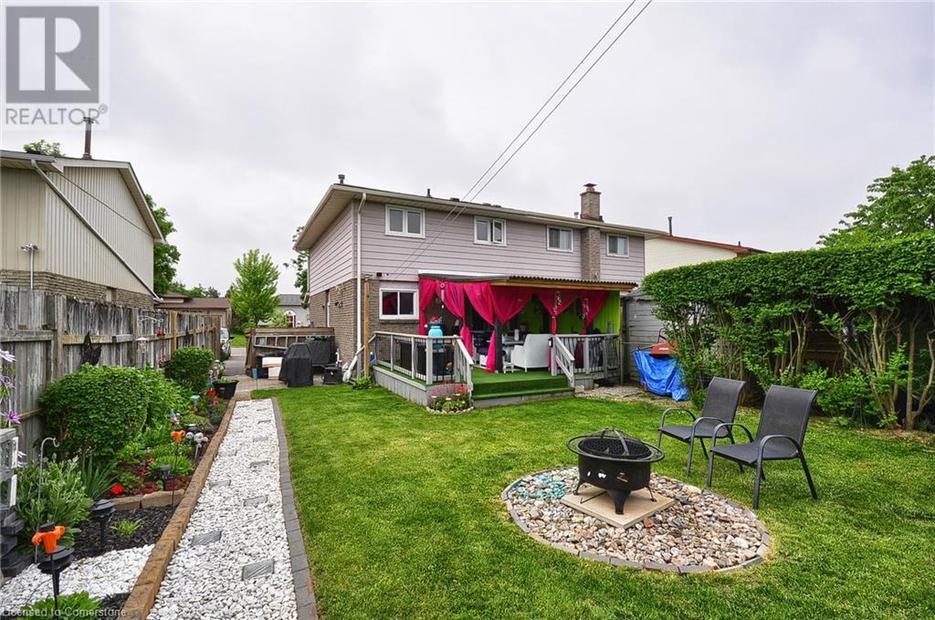 A rare opportunity, ready to move in. This 2 story semi-detached home with a large private back yard. Step into a bright modern kitchen with stainless steel appliances, quartz countertops, pot lights under counter and above sink with ceramic tile flooring. Walk-out to a large covered deck, perfect for entertaining. The main floor features a large living room with bay window, separate dining room and bathroom. The upper level features 3 bedrooms, all without carpet and natural light throughout. The finished basement offers a separate entrance, large rec room and bonus room and laundry. Minutes to public and separate schools, parks, community centre gym and shopping and minutes to highway. A MUST SEE. (id:46441)