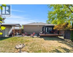 LOOKING FOR THAT LARGE BUNGALOW?? OVER 1600 SQ FT OF MODERN DESIGN, BUILT 2002 ON THE QUIET SIDE OF STONEY CREEK MOUNTAIN, NEAR 3RD ROAD E. OFFERING A BEAUTIFUL CORNER LOT WITH ALL BRICK EXTERIOR, 1 FLOOR WITH ATTACHED DOUBLE CAR GARAGE WITH HEATER (FOR THE CAR GUY), PRIVATE FULLY FENCED IN REAR YARD TO THE NORTH. 2000 GALLON CISTERN, SHINGLES REPLACED IN 2019. WASHER DRYER 3 YEARS +/- NEW, NO RENTAL ITEMS. THIS HOME IS FULL OF STYLE AND CHARM, UPON ENTRY THE GREAT ROOM SHOWS WHY THIS ONE IS GREAT ** HUGE 29 FOOT EATIN KITCHEN WITH TONS OF CABINETRY, SPACIOUS EATING AREA, PATIO DOORS TO THE REAR DECK AND COVERED GAZEBO INCLUDED, ENJOY THE PRIVACY OF THE YARD AT YOUR LEISURE. THERE ARE 3 VERY GOOD SIZED BEDROOMS, AND A BEAUTIFUL FULL 3 PIECE ENSUITE BATHROOM WITH WALKIN CLOSET FOR THE PRIMARY. THE BASEMENT IS FULLY FINISHED WITH LARGE REALLY LARGE RECREATION ROOM, UTILITY AREA, STORAGE AND MORE. A MUST SEE. RSA (id:46441)