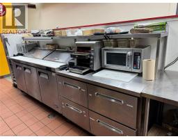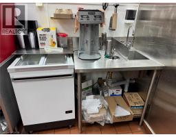 This prime location is a Goldmine for any entrepreneur dreaming of opening their own restaurant or for those wishing to continue the success of an already thriving Turnkey Sam's Grill franchise. Nestled in the bustling heart of Burlington, this spot attracts phenomenal foot traffic, strategically positioned alongside Tim Hortons and Shoppers Drug Mart within a vibrant plaza. Sam's Grill is celebrated for using the freshest ingredients to create mouthwatering, homestyle Burger's, specializing in Quebec-style Poutine, and offering fresh, hand-cut fries without any artificial flavors. The establishment is fully equipped and ready for success, featuring a modern design and state-of-the-art facilities. The completely updated kitchen includes top-of-the-line equipment such as a walk-in cooler, two sandwich stations, and a professional-grade grill. With low industry-standard rent and exceptional visibility in a plaza surrounded by complementary businesses, this location guarantees a steady stream of foot traffic. Whether you choose to continue operating under the well-established and popular Sam's Grill brand, known for its loyal customer base and high-quality food, or transform the space into your unique concept, this is a perfect opportunity to make your culinary dreams come true in a location already primed for success. (id:46441)