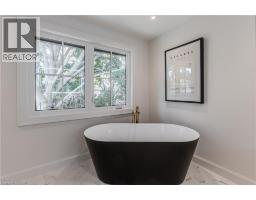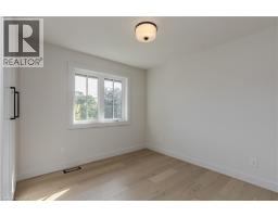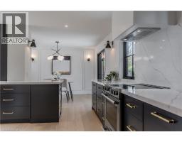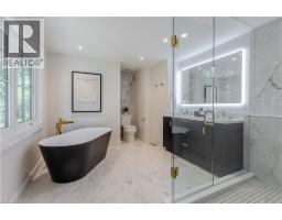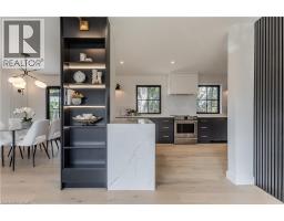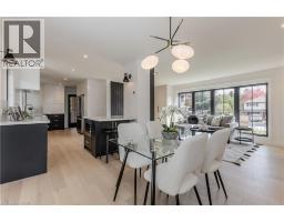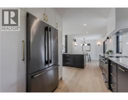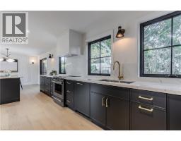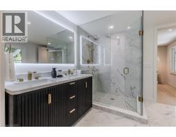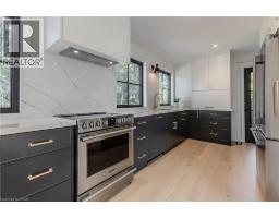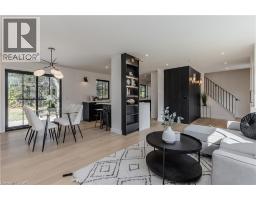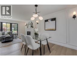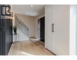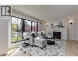 Modern luxury and family-friendly living in this fully renovated home in Dynes. Nestled on a mature, pool-sized lot with mature trees, this home is mins from schools, parks, dining, transit, hwys & lakefront. Spanning 2,177SF of total finished living space, this open-concept layout features exquisite details at every turn. From the stunning curb appeal with refinished exterior, fiberglass entry door & cedar-roofed covered porch, to the engineered white oak floors and abundant LED pot lights, this home has it all. The custom kitchen is a dream with slim-shaker cabinets, quartz counters & matching slab backsplash, gold fixtures, pantry, appliance garage & spacious island with breakfast bar. Seamless flow from kitchen to dining area with black frame sliders opening to a private yard with stone patio—ideal for entertaining. The inviting living room features a striking gas fireplace with modern surround & mantle. Plus an oversized window for natural light. Upstairs, retreat to a luxurious primary suite with WI closet & spa-like ensuite with freestanding tub & Riobel tub filler, large glass shower & double vanity. 2 additional bedrooms and a full bath complete this level. The finished lower level incl a cozy family room, office, massive laundry room with custom storage cabinetry & quartz counters. Extras: EV charger rough-in, gas BBQ connection, new Ridley windows, updated HVAC, sump pump, new electrical & much more! See supplement. All work done with permits. Move in ready! (id:46441)