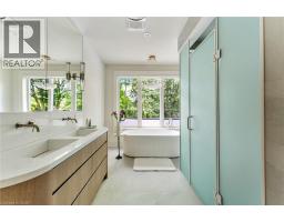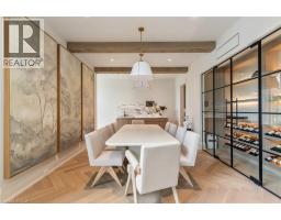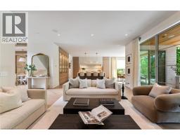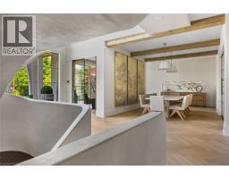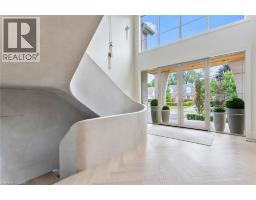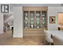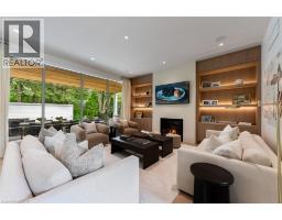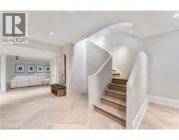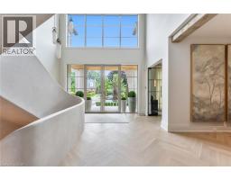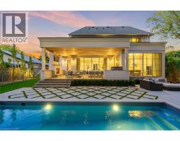 Welcome to 304 Pomona Avenue, a truly magnificent newly built home in Burlington’s highly coveted Roseland community. Step inside and you’re greeted by an incredible hand-carved plaster staircase rising through all three levels that’s perfectly paired with rift-cut white oak herringbone floors that set an elevated tone. A formal dining room makes a statement with decorative ceiling beams, a glass wine display, and a marble wet bar. The private library draws you in, finished with oak panelled walls and a reading nook with floor-to-ceiling corner windows that flood the room with natural light. The living room completes the main level’s gathering spaces with its plaster fireplace, oak shelving with integrated lighting, and full in-ceiling speakers. At the heart of the home, the kitchen offers a large custom plaster hood, oversized waterfall island, porcelain counters, and top-tier appliances including a 60” Wolf double oven, Sub-Zero fridge and freezer, and Bosch dishwasher. Pantry storage with reeded glass cabinetry and a walk-through servery extends the workspace. Just beyond, the breakfast area opens to a beautiful and serene covered terrace with a built-in BBQ, outdoor fridge, fireplace, and cedar-lined ceiling—overlooking the saltwater pool and landscaped gardens. Upstairs, four bedrooms each include private ensuites. The primary suite features a spacious walk-in closet and a spa-like bath with dual vanities, soaker tub, heated floors, and oversized shower. A full laundry room with custom cabinetry completes this level. The lower level expands the living space with a second kitchen, home theatre, gym, fifth bedroom, full bath, and radiant heated floors. Outside, stone patios, mature landscaping, irrigation, and a hydrangea wall create a welcoming backdrop. With 4+1 bedrooms, 7 bathrooms, and over 6,000 sq. ft. of living space, this Roseland residence combines thoughtful design with everyday comfort. Move in and enjoy! (id:46441)