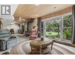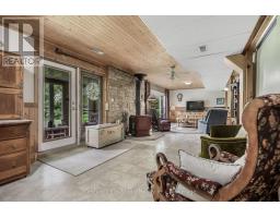 Situated on a tranquil 48-acre recreational paradise with river frontage on both sides of the Saugeen River, this property in Grey Highlands provides an ideal combination of privacy, nature, and family living. Whether you are looking for a peaceful permanent residence or a weekend getaway, this home and its surroundings promise four seasons of enjoyment.The main level welcomes you with a 3-season sunroom overlooking the trees, and a spacious upper deck extends your living space into the outdoors. An open-concept kitchen, dining, and living area, anchored by a cozy zero-clearance fireplace, is ideal for gatherings. The primary bedroom features built-in cabinetry, while a 4-piece bathroom and laundry room complete the main level. Downstairs, the walkout basement features a bright family room with a wood stove for added warmth, a bedroom with its own 3-piece ensuite bathroom, and a second 3-season sunroom. The home is efficiently heated and cooled with a propane-forced air furnace and central A/C. It also includes an air exchanger, drilled well, owned hot water tank, iron filter, and a newer well pump. A 25' x 40' detached shop featuring concrete floors and hydro is ideal for hobbyists or entrepreneurs. It offers the potential for a studio or workshop space above and includes a 60-amp pony panel. Additionally, you will find three garden sheds and a charming goldfish pond integrated into the landscape. The land is mostly treed with trails waiting to be reclaimed, offering a blank canvas for hiking and quiet riverfront exploration. From skiing, boating, fishing, golfing, scenic lookouts, waterfalls, and lakes, the area is a playground for outdoor enthusiasts. Located in an outdoor recreation hotspot, you're just 10 minutes to Flesherton, under 20 minutes to Durham or Markdale, and 50 minutes to Owen Sound or Collingwood.Reconnect with nature and explore all that Grey County has to offer, this is a rare opportunity to own a riverside sanctuary with incredible potential. (id:46441)