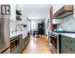 It’s rare to find a home that feels this special where every detail carries warmth, care, and charm. From the freshly painted board-and-batten exterior and storybook curb appeal to the brass hardware that catches the light just right, this home is a perfect blend of character and comfort. Step through the herringbone-tiled foyer into a completely reimagined main floor that offers true one-floor living. The open eat in kitchen feels both fresh and timeless, with quartz counters, two-tone cabinetry, a large pantry, gas range, and exposed brick chimney adding a cozy touch of history. The flow between spaces feels natural and welcoming ideal for everyday living or entertaining. The ornate fireplace anchors the spacious living room, while a stunning leaded-glass cabinet and original hardwood floor and woodworking accents add layers of texture and authenticity. A beautiful 4-piece bath recently redone, brings modern luxury to the mix, and the back family room or study with its electric fireplace makes a perfect retreat. Upstairs, the loft space offers two serene bedrooms, including a spacious primary with its own 2-piece bath. The windows fill every corner with soft light, and the thoughtful updates and fresh painting throughout make this home feel both move-in ready and truly one of a kind. Outside offers extensive private rear garden space, with towering mature trees. Out front offers private parking and an attached single car garage/workshop. Embrace the best of modern urban cottage living in this beautifully reimagined worker’s cottage; a perfect blend of heritage charm and contemporary style. (id:46441)