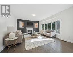 Executive home W/4-bdrm + den, 3.5-bath in prestigious White Cedar Estates-one of Guelph's most desirable & exclusive communities! Over 3250sqft of exquisitely designed living space, this elegant & welcoming home is ideal for families who value luxury, functionality & architectural detail. As you approach stone façade, front porch & 2-car garage set a tone of timeless curb appeal. Grand foyer W/soaring ceilings & oversized tile floors open to main level where natural light pours through large windows. Living room & adjacent dining area offer cathedral ceilings & large windows. Sunken den W/dramatic ceiling height offers perfect setting for home office, creative space or kids playroom. Kitchen features oversized centre island W/quartz counters & seating for 6, modern grey cabinetry, glass tile backsplash & designer pendant lighting. Top-tier appliances: B/I bar fridge, induction cooktop, prof over-range hood & dbl wall oven. Walk-through butlers pantry offers seamless flow to dining area. Sliding doors off breakfast nook open to back deck. Great room W/hardwood, fireplace & bay window. Upstairs primary suite W/wide curved bay window & W/I closet. Ensuite W/dual vanities, quartz counters, soaker tub, glass W/I shower & makeup vanity W/seating. 3 add' bdrms offer large closets & oversized windows. 2 bdrms are connected by Jack & Jill bathroom W/dual sinks, water closet & shower. 4th bdrm has ensuite providing privacy for guests & teen. 2nd-floor laundry room W/cabinetry, quartz counters & dbl sink. Unfinished bsmt has bathroom R/Is in place & ample sqft to create more living space, gym, rec room or in-law suite. Located on quiet street W/minimal traffic this home offers peace & privacy families crave while being mins from amenities: groceries, restaurants, gym & much more! Address falls within school districts for École Arbour Vista PS offering sought-after French Immersion & Centennial CVI one of Guelphs top-rated high schools. Convenient access to 401 for commuters! (id:46441)