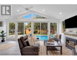 Tucked away at the back of Lambert Crescent, this tastefully updated sidesplit is move-in ready. From the moment you walk in the door the bright sunroom immediately catches your eye, offering vaulted ceilings, a cozy gas fireplace and heated floors, all with a view of the 16 x 32 heated inground pool. The main floor will continue to impress you with the open layout highlighted by a modern white kitchen, a dining space that opens to the deck with pool views, and a comfortable living area designed for relaxing or entertaining. The upper level includes 3 bedrooms and an updated 5-piece bathroom featuring a stunning tiled glass shower, double sinks, and in-floor heating. Built-in dresser drawers and shelving have been added to the primary bedroom, combining style with smart storage solutions. The finished basement provides yet another versatile living space that could serve as a family room, workout area, or home office. This level also showcases a fully renovated 3-piece bathroom. Whether it's summer pool parties or quiet evenings by the fire, this home offers the perfect setting for making memories. (id:46441)