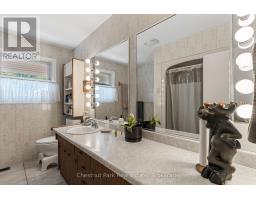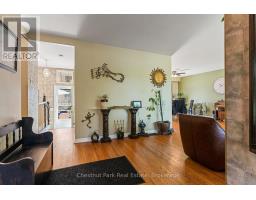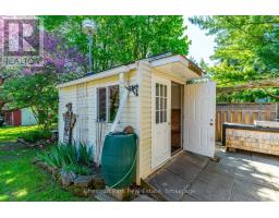 What a lovely find in Heart of Collingwood .... a simply wonderful true Bungalow, located in a prestigious neighbourhood and surrounded by custom homes! A gardener's delight, this fabulous property has so much to offer. Sought after privacy, multiple out buildings and cozy 3 season spaces to gather, additional carport plus attached garage with hydro. Featuring an open concept layout with bright living spaces, front views of gardens and distant ski hills & multiple rear access points to the beautiful back yard. A sought-after floor plan offering 3 main floor bedrooms all with traditional hardwood floors plus a 4-pc bathroom with unique laundry chute. Enjoy the bright dining room located beside the open kitchen. A spacious lower level including large laundry / folding area / storage space, a special "built-in" storage room, a separate exercise room and workshop. Looking to watch TV or play video games ... step into your roomy rec room featuring surround sound system and dimmable pot lights. Even a 3-pc bathroom with soaker tub! Spend time on your multi-level decks entertaining, gardening or resting easy in the screened-in porch. Simply a fabulous find, this home even comes with an additional dug well for watering the gardens or washing your car, plus hurricane shutters. Come and Enjoy the 4-season life that Collingwood offers with this well located, amenity rich, all brick home. (id:46441)