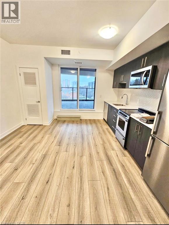 Where style meets substance in this brand-new, never-lived-in two-bedroom, two-bathroom residence. Thoughtfully designed, this modern unit features luxury vinyl plank flooring, in-suite laundry, sleek designer lighting, and secure underground parking. Ideally located just 3 minutes from the University of Waterloo and within close proximity to Uptown Waterloo, Wilfrid Laurier University, the Waterloo Rec Complex, and the Hydro cut trail system, offering an exceptional urban lifestyle. Designed for active living, the building offers easy access to bike routes, secure bike storage, and an on-site bike maintenance station. Premium amenities include a curated co-working lounge with coffee bar and meeting pods, pet wash station, EV-ready parking, secure parcel room, and optional storage lockers. Experience modern convenience, community, and design (id:46441)
