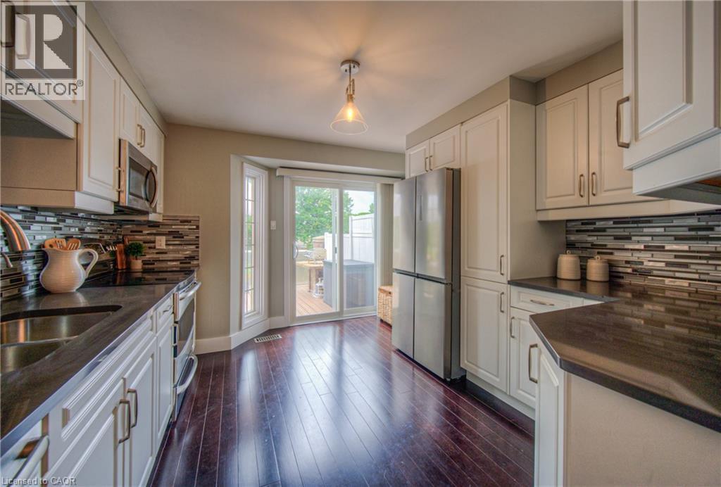 Welcome to Riverwalk, West Galt’s most desirable condo community. This updated townhouse offers over 1500 square feet of finished living space with quality renovations throughout. The main level has a bright, open layout with a welcoming foyer, stylish powder room, formal dining area, and a comfortable living room with a gas fireplace. The modernized kitchen features stainless steel appliances, ample storage, and direct access to a private, river-facing deck that’s perfect for morning coffee or summer entertaining. Upstairs you’ll find two spacious bedrooms, including a primary suite with walk-in closet, and a renovated four-piece bathroom. The finished lower level provides even more living space with a refreshed rec room, a thoughtfully designed laundry area, and a three-piece bath completed in 2022. Recent updates include hardwood flooring on the main and upper levels, furnace (2021), air conditioning (2022), water heater (2021, owned), reverse osmosis system (2021), and washer and dryer (2022), insulation added to attic(2024), professionally painted (2024). Everything has been done to make this home move-in ready. Life at Riverwalk is about more than just the home itself. Step outside to enjoy miles of scenic walking and biking trails, or stroll to nearby shops, restaurants, the Cambridge Farmers’ Market, Idea Exchange, and the Hamilton Theatre. Take part in the community garden or gather with neighbours and family at the Quarry House hospitality centre. This is a rare opportunity to enjoy low-maintenance living in a welcoming and well-established community. (id:46441)