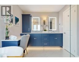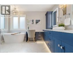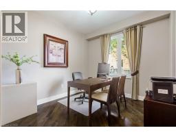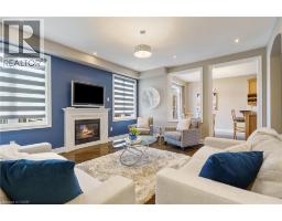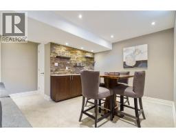 Welcome to this beautifully upgraded home in desirable Bronte Woods! This stunning property is finished from top to bottom, offering over 4,200 sq. ft. of luxurious living space with 4 spacious bedrooms, 5 bath's, main floor den, and an incredible finished basement. Step inside to discover hardwood floors through main level and a cathedral ceiling in the living room, where a large picture window fills the space with natural light and overlooks tranquil greenspace. The renovated 2-piece powder room and large upgraded kitchen feature stainless steel appliances — including a built-in dishwasher, microwave, gas stove, and ice-making fridge. 9-foot ceilings enhance the home's sense of openness and airiness. The bright and oversized family room boasts a gas fireplace and pot lights throughout, creating a warm and inviting atmosphere. The main floor office is perfect for today's work-from-home lifestyle. A renovated laundry/mudroom includes a stackable washer/dryer and convenient garage access. A solid wood staircase leads to the upper level, where you'll find a spacious principal suite with sitting area, a gorgeous 5-piece renovated ensuite featuring heated floors, under-cabinet lighting, an illuminated mirror, separate glass shower, double sinks, and a freestanding slipper tub. The suite also offers a generous walk-in closet. The upper level continues with three additional large bedrooms — bedrooms 2 and 3 share a semi-ensuite bath, and bedroom 2 features its own walk-in closet. The finished basement is an entertainer's dream, complete with a wet bar, custom built-in cabinetry, exercise area, games room, and multiple storage areas including a cold room. Recent upgrades include: New window panes throughout. Roof re-shingled, New air conditioner, New front door, New exterior light fixtures, Upgraded attic insulation, Pot lights throughout, and The private, fully fenced backyard features multi-level decks. Ideally located within walking distance to the lake. (id:46441)