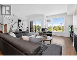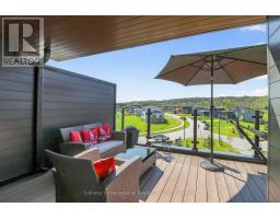 $499 MonthlyWelcome to The Sands. Immerse yourself in the four seasons splendour of Southern Georgian Bay in this brand new, luxury condo community in Lora Bay. Boasting the best views of Lora Bay golf course, Georgian Bay and the escarpment in the community, this 2 bed, 2 1/2 bath, three story condo with expansive rooftop terrace is the ideal vacation property or permanent retreat. The ground floor offers an exceptionally deep garage (room for two cars) with interior access to the stylish main entrance and flex room, currently equipped with a sauna. Travel upstairs by way of the beautiful wood and carpeted staircase or your very own private elevator. The main floor is an open concept entertainers dream with massive windows allowing tons of natural light, high ceilings and pot lights throughout. The expansive kitchen is complete with a large island, quartz counter tops, ample storage and a walk out to the south facing deck. Beside the kitchen sits the open concept dining space with room for an oversized table and completing the main floor is the beautiful living room with gas fireplace, views of the golf course and a north facing deck. Another ride up the private lift brings you to the third floor and the primary and guest bedrooms. The primary bedroom overlooks the golf course and the bay and has ample room for a king size bed. Complete with a large walk-in closet and a gorgeous 4 piece ensuite. Just outside the primary bedroom you will find the convenience of the laundry closet, and steps away sits the luxurious guest bedroom boasting a large closet and a south facing balcony. Your final trip up the lift takes you to the stunning rooftop terrace with north and south facing panoramic views. Don't miss this opportunity to truly enjoy the Southern Georgian Bay lifestyle from this luxurious, convenient and stunning condo. **opportunity to purchase with some or all furniture** (id:46441)