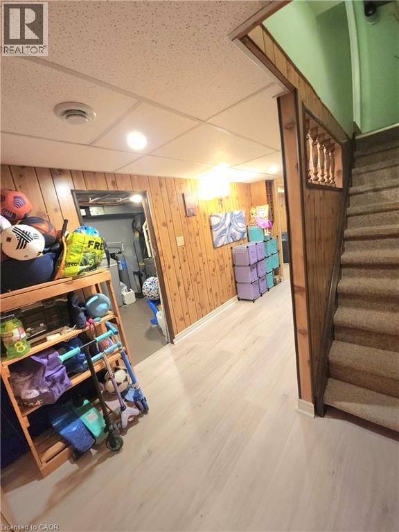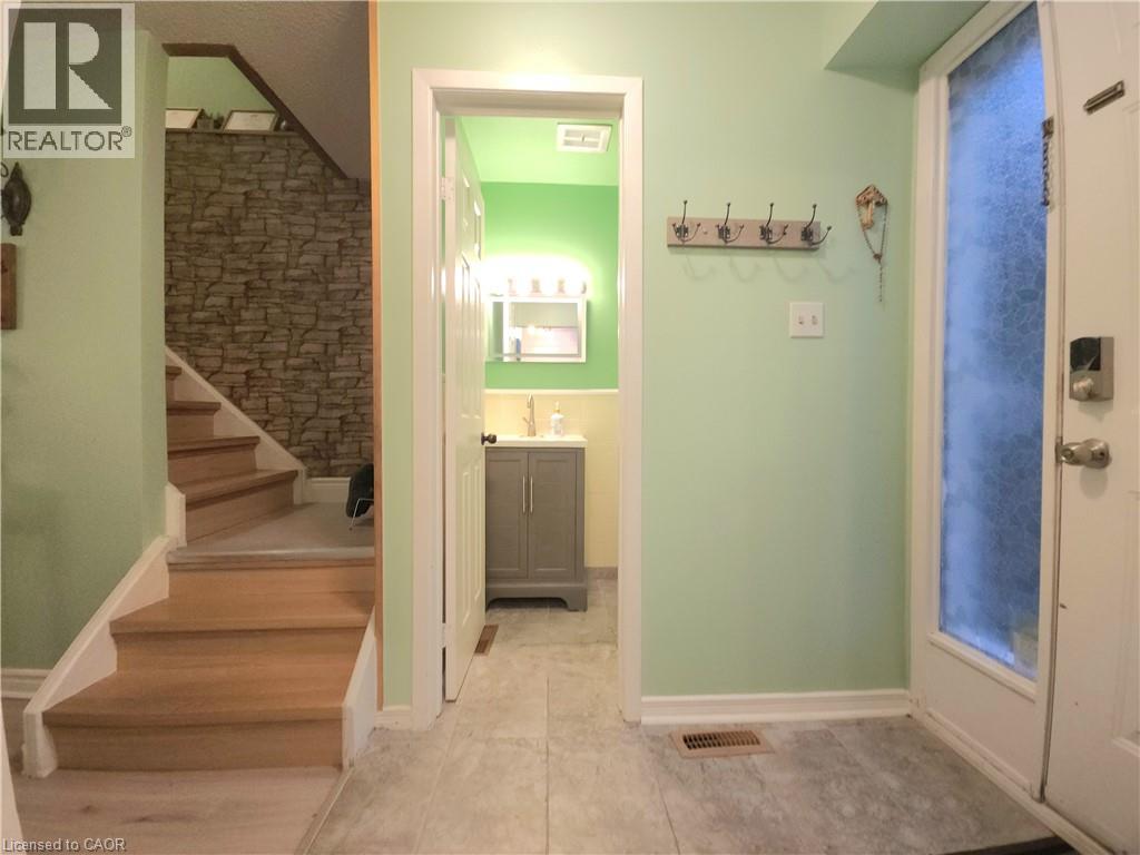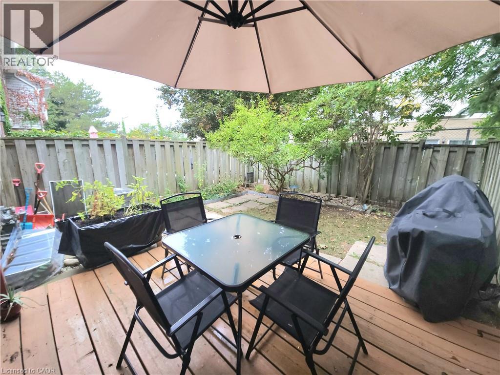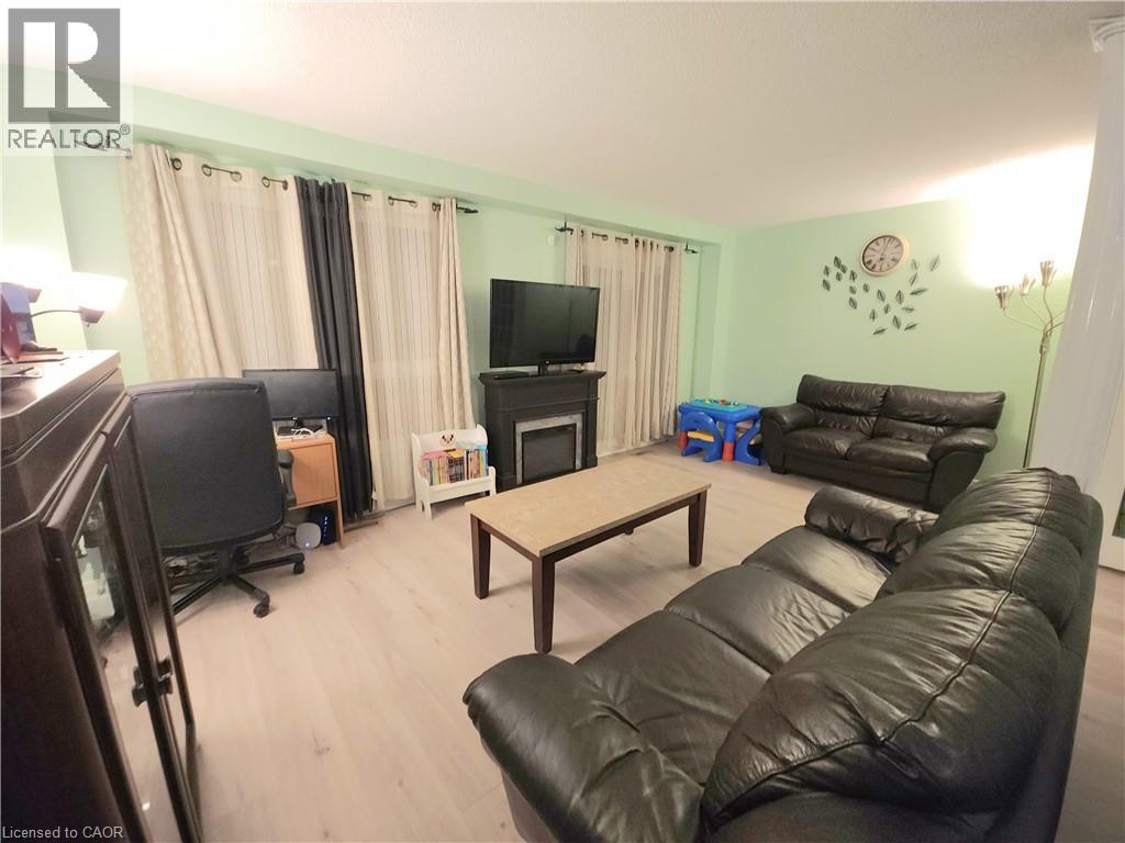If you’ve been waiting for the perfect starter home, this beautifully updated three-bedroom end-unit townhouse is your chance to get into the market! The spacious main floor features a bright, modern kitchen with white cabinetry, quartz countertops, stainless steel appliances, and a stylish backsplash, all flowing into an open-concept living and dining area filled with natural light. Recent upgrades give you peace of mind, including a new furnace and AC (2019), basement flooring (2021), acoustic ceiling panels (2022), washer and dryer (2023), ceramic floor in kitchen, bathroom, and entrance (2025), and a water softener (2025). The second floor offers new flooring (2023), wood stairs and fresh paint (2024), plus a fully refreshed bathroom with a new vanity and toilet (2025). Outside, enjoy your own private patio with a deck and mature landscaping, plus an updated playground (2024) within the condo community — perfect for young families. With a newer roof (2021), easy access to highways, and thoughtful finishes throughout, this move-in-ready home combines style, comfort, and value — a smart choice for first-time buyers looking to step confidently into homeownership. (id:46441)