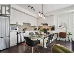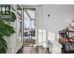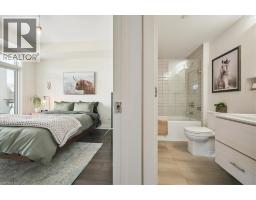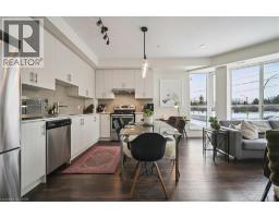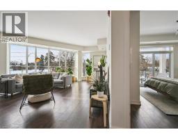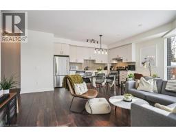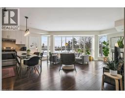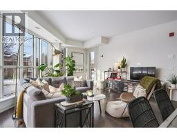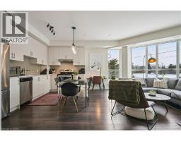 Floor-to-ceiling, wall-to-wall windows fill this stunning corner unit with natural light, creating a bright and airy space that truly sets it apart in this boutique low-rise building. The open layout is enhanced by 9-ft ceilings, wide plank hand-scraped flooring, and a welcoming foyer with plenty of storage. The sleek kitchen boasts quartz countertops, a glass backsplash, and modern appliances, while the spa-like bathroom features imported porcelain tile and ensuite privilege. Enjoy high-end roller blinds throughout, including blackout in the bedroom, plus walkouts to the spacious balcony from both the living room and bedroom. Built by Rosehaven Homes in 2020, this community offers exceptional amenities: a fitness and yoga studio, business centre, party room, rooftop terrace with BBQs, gardens, and fire pit, plus bike storage, visitor parking, and a dedicated dog area. The location is unbeatable just a short walk to Aldershot GO, shops, cafes, LaSalle Park, and the RBG, with quick highway access to the 403, QEW, and 407. (id:46441)