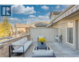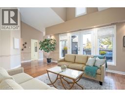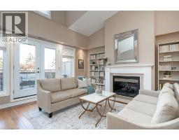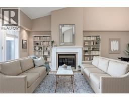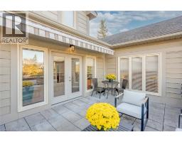 Welcome to The Terraces, an exclusive enclave in South Burlington’s desirable Roseland neighbourhood. This rarely available, light-filled end-unit townhome offers 1,656 sq. ft. above grade with 2 bedrooms, 2 bathrooms, and a thoughtfully designed open-concept layout that combines comfort and sophistication. The expansive living and dining area showcases vaulted ceilings, gleaming walnut floors, and a gas fireplace, creating a warm and inviting atmosphere. French doors open to a private terrace with an awning, perfect for morning coffee or evening relaxation. The bright kitchen provides generous counter and storage space, while the main floor primary suite features a 4-piece ensuite and his-and-hers closets. A second bedroom with a walk-in closet offers ensuite privileges to the 3-piece main bath. Convenient main floor laundry adds to the ease of one-level living. The fully finished basement extends your space with a recreation room, den, and rough-in for an additional bathroom. Enjoy inside entry from the attached garage plus ample visitor parking. Maintenance is effortless — snow removal for the driveway and steps, landscaping, and all exterior upkeep are fully managed, allowing you to enjoy a carefree, lock-and-leave lifestyle. Ideal for snowbirds or those seeking a low-maintenance home without compromise. Perfectly situated near downtown Burlington, the waterfront, parks and trails, shopping, and highway access, this immaculate home offers the best in comfort, convenience, and community. (id:46441)