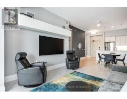 Experience refined living at Monaco, downtown Collingwood's most coveted address. This beautifully appointed "Beatrice" model offers 1,150 sq. ft. of thoughtfully designed space, featuring 10-foot ceilings and an open-concept layout filled with natural light. This particular unit stands out with its generous 226 sq. ft. private terrace spanning the full width of the condo, an incredible extension of your living space and the perfect spot for summer evenings, morning coffee, or entertaining friends. Inside, you'll find two spacious bedrooms plus a versatile flex space ideal for a home office or welcoming entry/mudroom. The primary suite offers a spa-inspired ensuite complete with a walk-in glass shower, double vanities and walk-in closets. The second bedroom is equipped with a built-in Murphy bed and enjoys access to its own private bathroom, perfect for guests. The kitchen is stylish and functional, featuring quartz countertops, ceramic tile backsplash, stainless steel appliances and a large island that connects to the living area, ideal for hosting and everyday living. Residents of Monaco enjoy exceptional amenities, including a stunning rooftop terrace with waterfall and fire pit, alfresco dining area with BBQs, an indoor social lounge with bar and a fitness centre overlooking Blue Mountain. Additional features include secure FOB entry, underground parking with two dedicated spaces, a large storage locker, Wi-Fi-enabled common areas and a pet-friendly atmosphere. With direct access to Collingwood's vibrant main street, you're just steps from restaurants, shops and the waterfront. The on-site upscale market and café add another layer of convenience and community. This is effortless luxury living in the heart of Collingwood where lifestyle truly meets location. (id:46441)