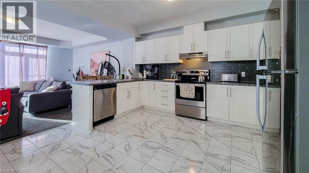 This Modern End Unit Townhouse Feels Like A Semi With One Of The Largest Backyards In The Neighbourhood! Nestled On A Quiet & Family Friendly Street In Binbrook. The Main Floor Features An Open Concept Living Space With A Large Modern Kitchen, Dining Area & Large Living Room Space. The Kitchen Is Equipped With Stainless Steel Appliances & Lots Of Counter & Cabinet Space. The Living Room Features A Walk Out To The Oversized Backyard. The Main Floor Also Includes A Powder Bathroom For Guests. The 2nd Floor Includes 3 Large Bedrooms & Two Bathrooms. The Primary Features A Large 4 Pc Ensuite & Walk-In Closet. The Laundry Room Is Located On the 2nd Floor For the Ultimate Convience. The Townhouse Includes an Unfinished Basement Perfect For Additional Storage Or Play Area. The End Unit Townhouse Comes With It's Perks With No Neighbours On The Left. A Long Driveway & An Oversized Backyard. This Townhouse Is Just Steps From Major Retailers, Bellmoore Elementary School & Our Lady of Hope Catholic Elementary School, & Parks. (id:46441)