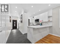 Walk to Lake Ontario. Just minutes to Winona Crossing and highway access. Perfect for commuters. Great family area with neighborhood park. This lovely updated home with bright entryway with lots of pot lighting. Updated kitchen with quartz countertops, loads of extra cupboard space, built in microwave + dishwasher and stainless steel appliances. No carpeting here. Sliding doors from living room to private fenced yard perfect for summer barbecues. Primary bedroom with entire wall of built in dressers and cupboards as well as walk in closet. Updated ensuite with double sink, oversized shower and standalone tub. Work at home with convenient office on upper level. Large rec room with built ins. Extra bedroom on lower level. (id:46441)