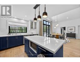 Discover this beautifully renovated 4 bdrm custom chalet where modern luxury meets serene natural surroundings, with the Silver Creek flowing through your backyard. Perfectly situated just minutes from Blue Mountain, Osler Bluff, and the area's premier private ski clubs, this raised bungalow features a total of 2263 sq. ft. and is finished to perfection and ready for four-season living.From the moment you step inside, you'll be captivated by the meticulous craftsmanship and contemporary elegance, highlighted by wide-plank hardwood flooring throughout. The main level features a stunning 14' vaulted ceiling in the open-concept Great Room and Dining Room, anchored by a dramatic floor-to-ceiling stone wall w/wood burning f/place. Walk out to both front and rear decks to enjoy peaceful views of Blue Mountain and the Silver Creek- a perfect backdrop for morning coffee or après-ski evenings.The bright, gourmet kitchen is designed for both style and function, offering quartz countertops, stainless steel appliances, and a chef-inspired 36" six-burner Zline gas range, as well as a French door refrigerator, Bosch dishwasher, microwave, and bar fridge.Relax in the main floor private primary suite featuring a vaulted ceiling, two closets including a custom walk-in, and a spa-inspired ensuite complete with a stand-alone soaker tub & glass shower. The lower level walkout offers exceptional versatility with three additional bedrooms that can be easily repurposed as dedicated office space, a fitness room, or recreation areas, depending on your needs. After a day on the slopes, unwind in the built-in steam sauna. Additional upgrades include custom drapery, heated floors in bathrooms, and built-in closet cabinetry throughout. With parking for 6+ cars, this is the ultimate mountain-modern chalet- stylish, luxurious, and equipped with every comfort. (id:46441)