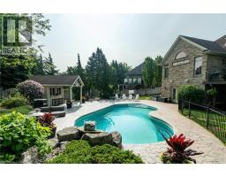 Welcome to luxury living on one of Waterloo’s most desirable courts! This custom-built all-brick bungalow by Milla Homes offers 3,330 sq.ft. of refined living space, highlighted by vaulted ceilings, hickory-style hardwood, and premium finishes throughout. The main floor showcases a spacious primary suite with tray ceiling, walk-in closet, and a spa-inspired ensuite featuring a whirlpool tub and glass steam shower. A versatile second bedroom or office is paired with a stylish 3-piece bath. The chef’s kitchen is a showpiece with granite counters, stainless steel appliances, and a distinctive circular island opening onto the great room with a double-sided fireplace and formal dining area. The bright walk-out basement provides exceptional flexibility, ideal for an in-law suite or independent space for older children. Recently updated with new flooring, it features large windows, a kitchenette and bar with fridge, sink, and stove hookup, gas fireplace, two bedrooms, and a full bath. One bedroom is designed as a second primary suite, complete with walk-in closet and ensuite access, creating a perfect private retreat. Step outside to your secluded backyard oasis, offering professional landscaping, a large deck, in-ground pool with rock waterfall, hot tub, cabana bar, stone pathways, and full fencing for privacy. All this, just minutes to top schools, Molly Bean Playground, shopping, trails, and everyday amenities (id:46441)