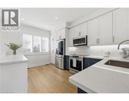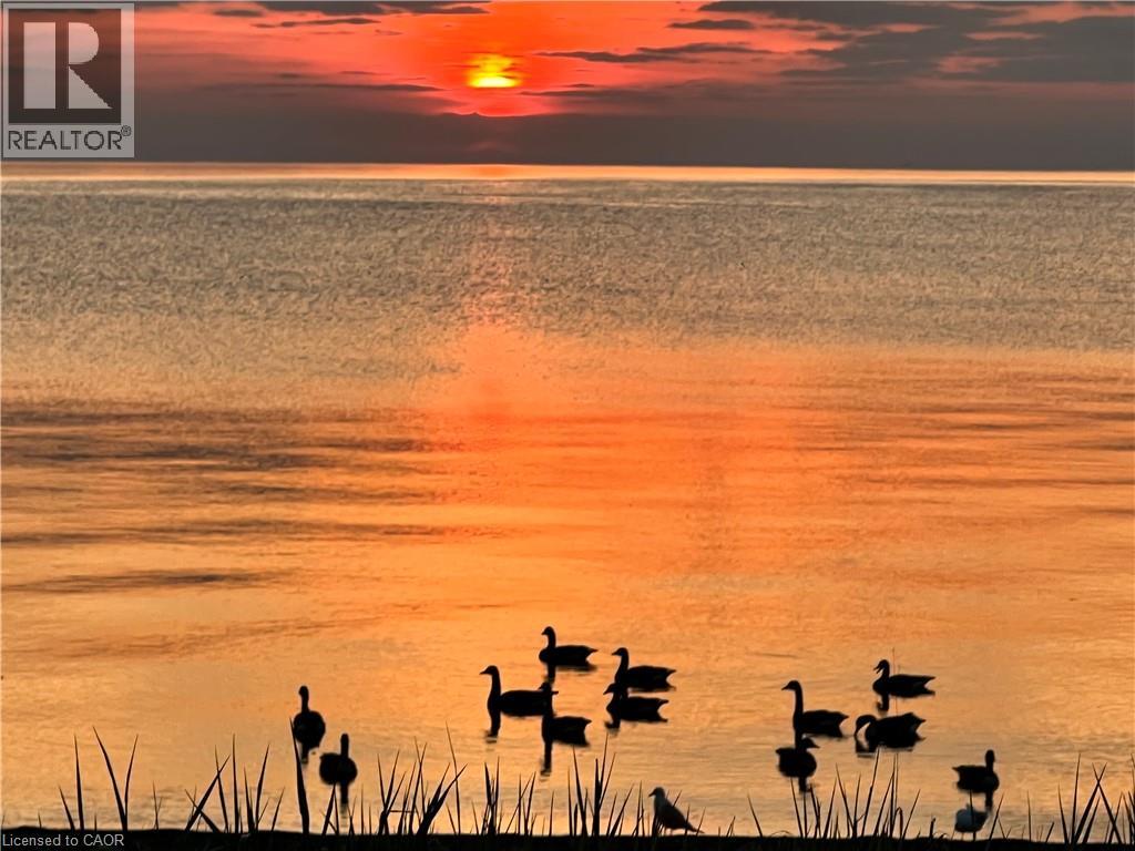 Welcome to lakeside luxury living at its finest. With panoramic views of Lake Ontario from nearly every angle, this sophisticated residence invites you to experience the water as part of your daily life. This 2+1 bedroom, 2-bath townhouse features 1,415 sq. ft. of fully updated living space across three levels, designed to complement its breathtaking waterfront setting. The bright, eat-in kitchen features stainless steel appliances, quartz countertops, two-toned cabinetry, and ample storage—perfect for everyday living or entertaining. The open-concept dining and living area showcases built-in shelving, upgraded lighting, and unobstructed views of Lake Ontario. Step out to your 9' x 15' partially covered balcony complete with a gas BBQ hookup and stairs leading directly to the beach—ideal for summer gatherings and quiet morning coffees. New hardwood stairs with sleek metal banisters lead to the upper level, where you’ll find the beautiful primary bedroom with large windows framing more stunning lake views, a second spacious bedroom, and a tastefully renovated 4-piece bathroom. The versatile lower level offers additional living space for a gym, office, or playroom, featuring a walk-out to the private patio and relaxing hot tub overlooking the lake, plus a modern 3-piece bath and inside entry from the garage. Recent updates include: flooring (2023), kitchen and appliances (2023-2025), lower bath (2025), upper bath (2024), hardwood stairs & metal railings (2025), upgraded lighting (2023), custom living room built-ins (2024), hot tub (2023), deck updates (2025), and roof shingles (2021). Enjoy parking for two cars, an EV charger, and a low condo fee that covers snow removal, gardening, and irrigation. Savour evenings by the fire with neighbours, paddle boarding or kayaking from your backyard, and the soothing sound of waves at night. Just minutes to restaurants, shopping, Confederation GO Station, and downtown Burlington—this is turn-key lakefront living at its best. (id:46441)