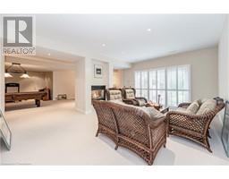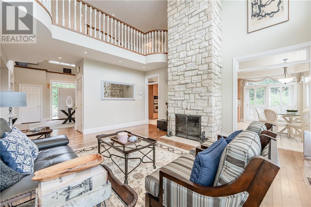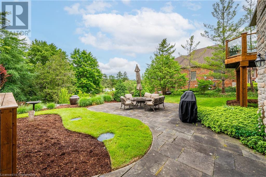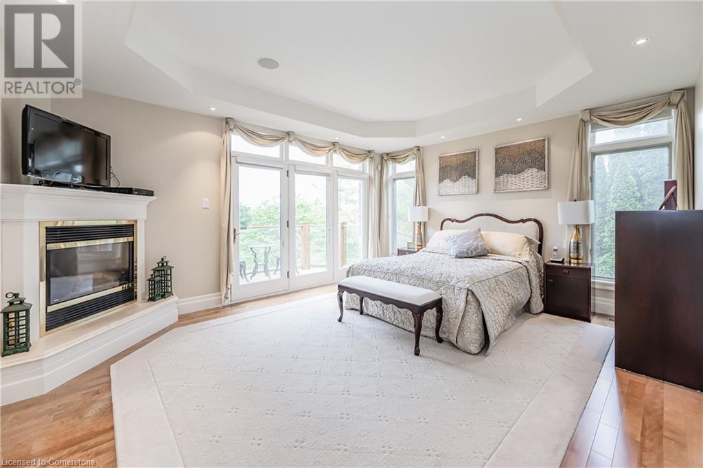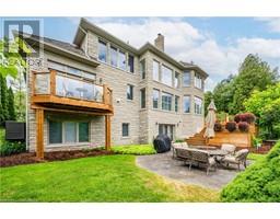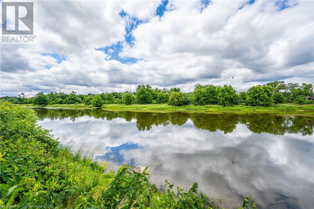 Experience the epitome of refined living in the esteemed River Oak Estates with this remarkable residence. Set on a lush, over 1/2-acre lot, this home enjoys an unrivaled position backing directly onto the serene Grand River, a charming pond, and the picturesque Grand River Trail. Impeccable landscaping frames the property, enhancing its private, picturesque setting. Spanning over 6000 square feet, this estate features 5+2 bedrooms and 6 bathrooms, embodying luxury at its finest. The grand foyer welcomes you with a stunning staircase leading to an open second-level landing. French doors open to the elegant formal living and dining rooms, perfect for hosting gatherings of 14+ guests. The sunlit kitchen is a chef's dream, boasting a dinette, an oversized island, and a walkout to a spacious deck ideal for entertaining. The adjoining family room, highlighted by a striking stone wood-burning fireplace, offers magnificent views of the Grand River. The main floor suite provides a peaceful haven, complete with a gas fireplace, walk-in closet, and a private balcony. The 6-piece en suite is a sanctuary of luxury, featuring his and hers vanities, a walk-in shower, and a soaker tub surrounded by windows. The upper level showcases four bedrooms, an office with built-in shelving, and a sophisticated media room. The fully finished lower level includes two bedrooms, a 3-piece bathroom, a wet bar, a games room, and generous storage, with a walkout to a stone patio and rear gardens that seamlessly blend indoor and outdoor living. This residence represents a harmonious fusion of elegance and comfort in a coveted location. Begin your journey of luxurious living and awe-inspiring views at this distinguished River Oak Estates home—where every detail invites discovery. Your dream home awaits, and a personal tour is just the beginning. (id:46441)