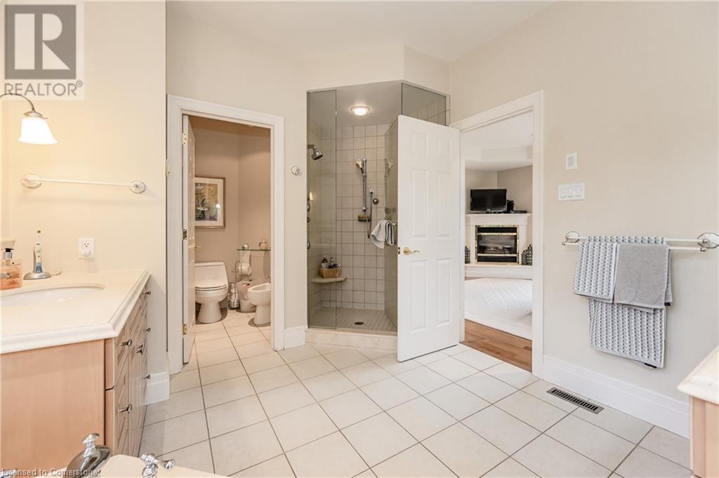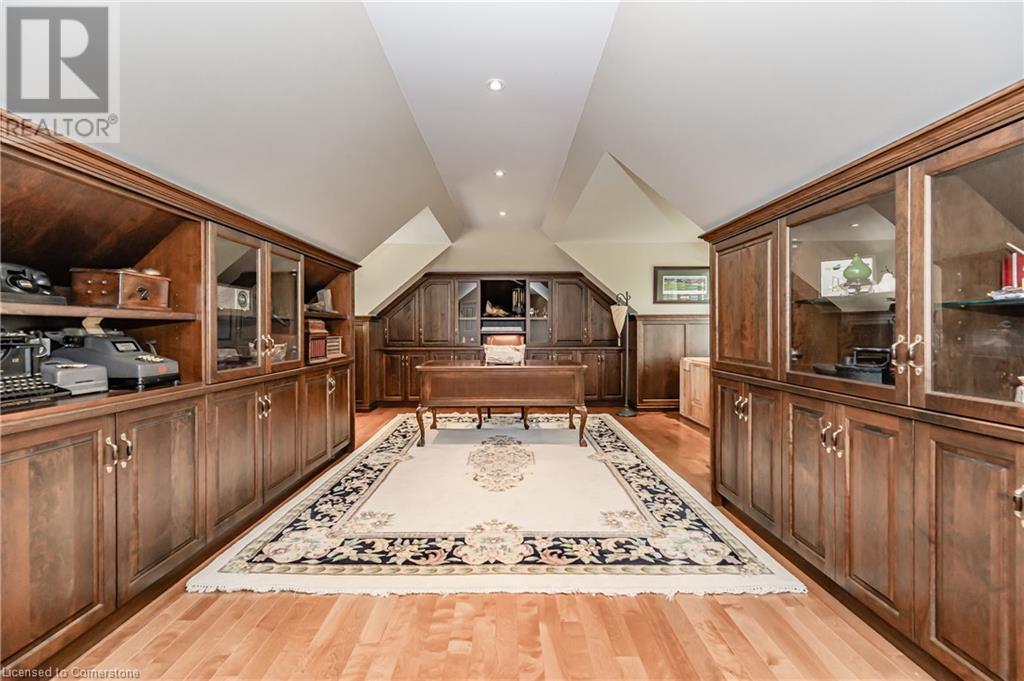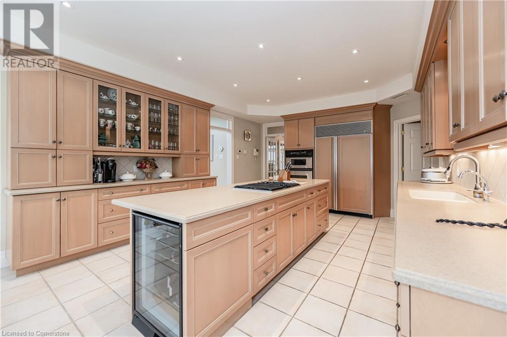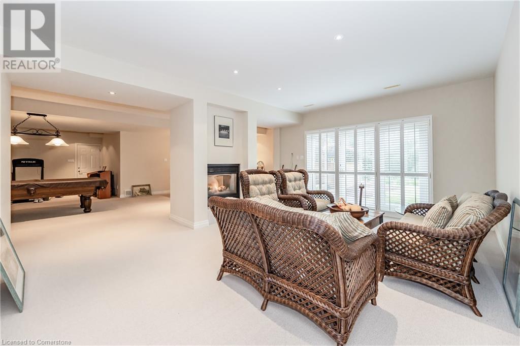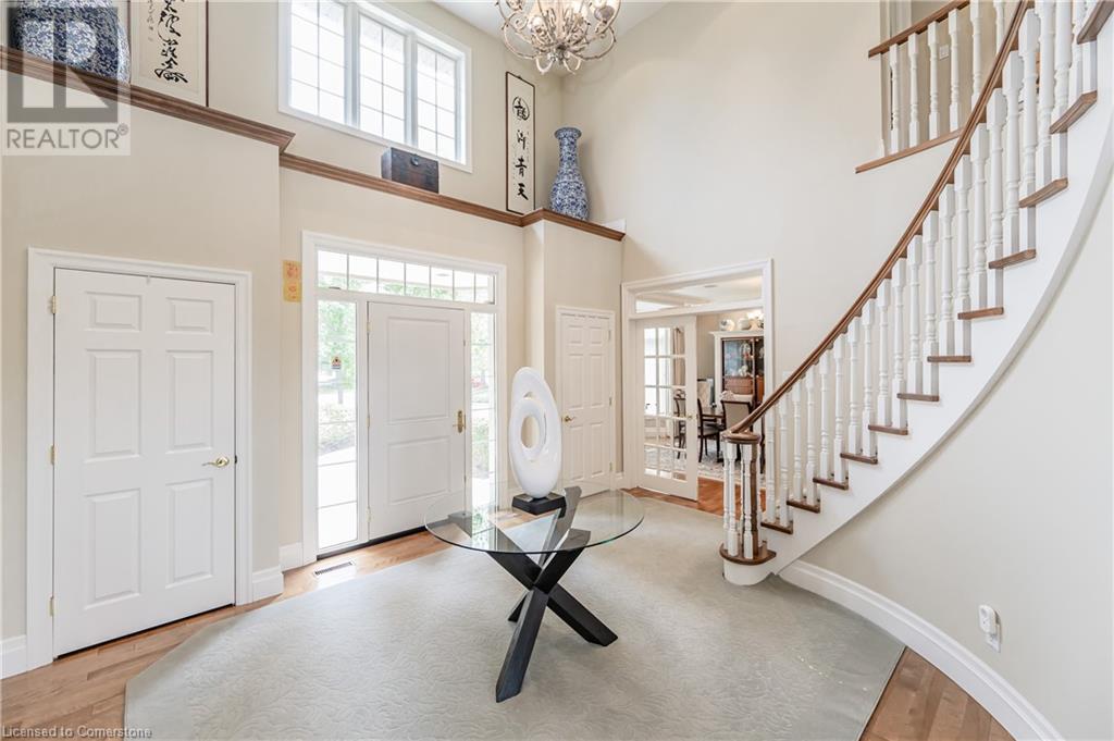 Experience the epitome of refined living in the esteemed River Oak Estates with this remarkable residence. Set on a lush, over 1/2-acre lot, this home enjoys an unrivaled position backing directly onto the serene Grand River, a charming pond, and the picturesque Grand River Trail. Impeccable landscaping frames the property, enhancing its private, picturesque setting. Spanning over 6000 square feet, this estate features 5+2 bedrooms and 6 bathrooms, embodying luxury at its finest. The grand foyer welcomes you with a stunning staircase leading to an open second-level landing. French doors open to the elegant formal living and dining rooms, perfect for hosting gatherings of 14+ guests. The sunlit kitchen is a chef's dream, boasting a dinette, an oversized island, and a walkout to a spacious deck ideal for entertaining. The adjoining family room, highlighted by a striking stone wood-burning fireplace, offers magnificent views of the Grand River. The main floor suite provides a peaceful haven, complete with a gas fireplace, walk-in closet, and a private balcony. The 6-piece en suite is a sanctuary of luxury, featuring his and hers vanities, a walk-in shower, and a soaker tub surrounded by windows. The upper level showcases four bedrooms, an office with built-in shelving, and a sophisticated media room. The fully finished lower level includes two bedrooms, a 3-piece bathroom, a wet bar, a games room, and generous storage, with a walkout to a stone patio and rear gardens that seamlessly blend indoor and outdoor living. This residence represents a harmonious fusion of elegance and comfort in a coveted location. Begin your journey of luxurious living and awe-inspiring views at this distinguished River Oak Estates home—where every detail invites discovery. Your dream home awaits, and a personal tour is just the beginning. (id:46441)