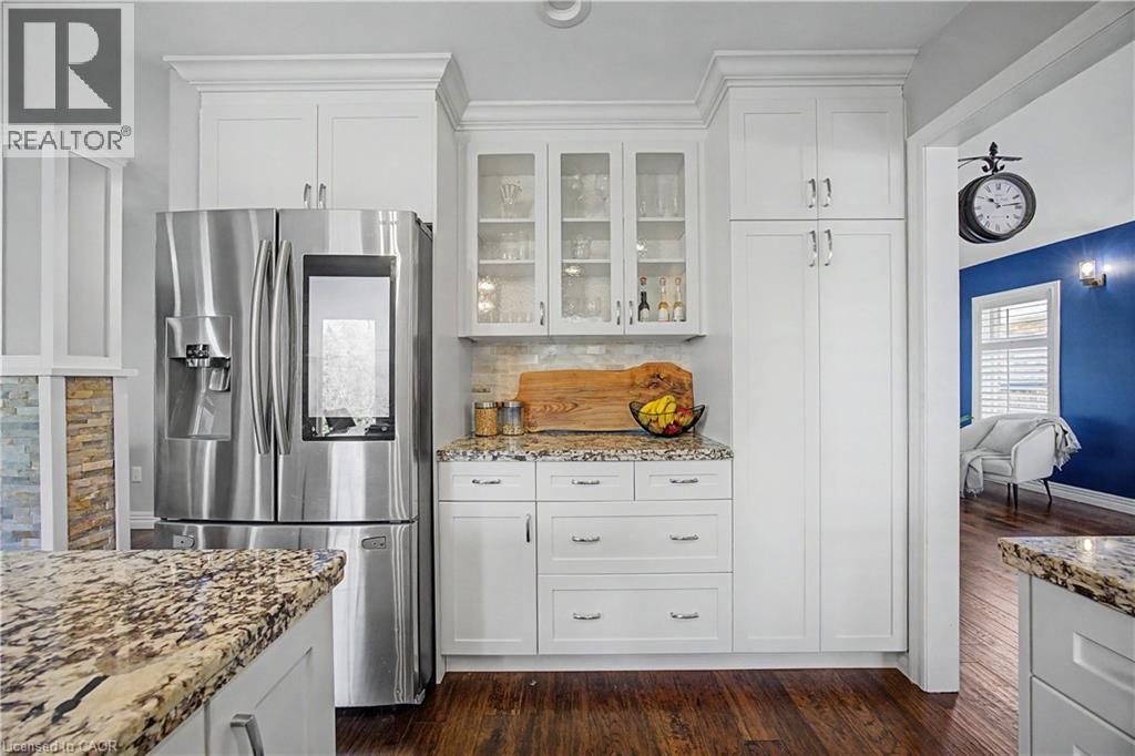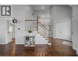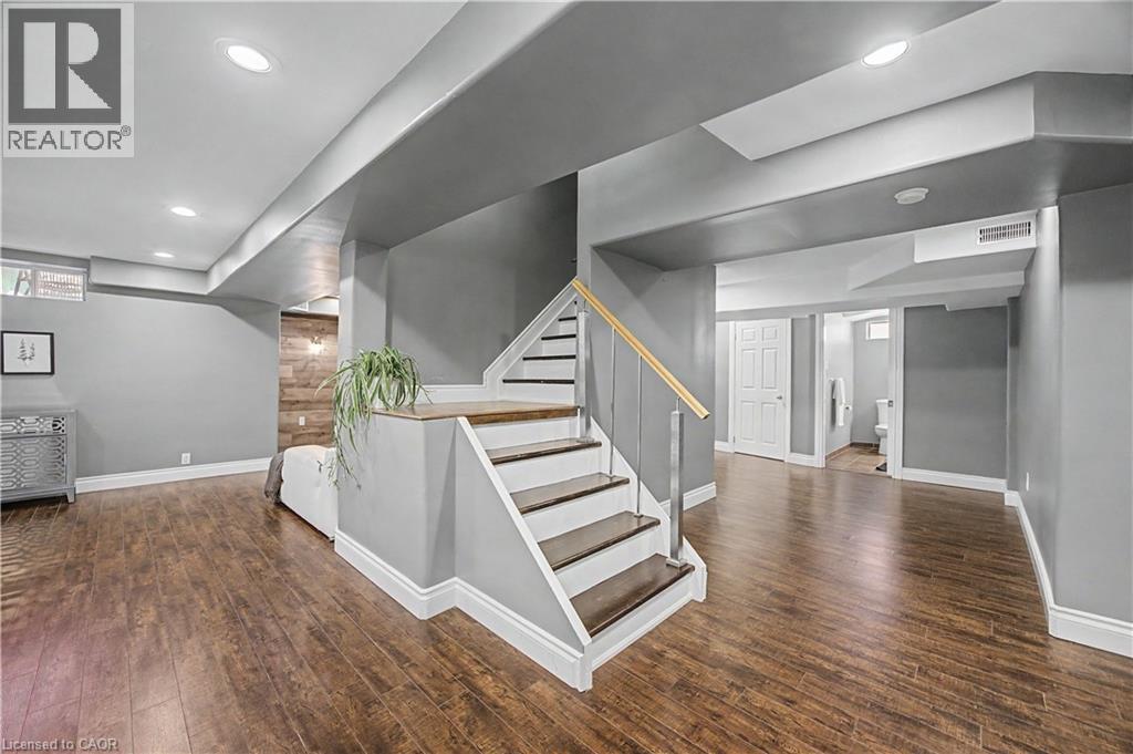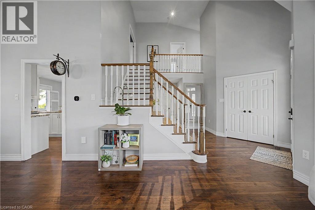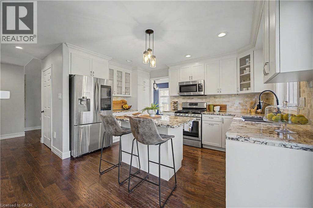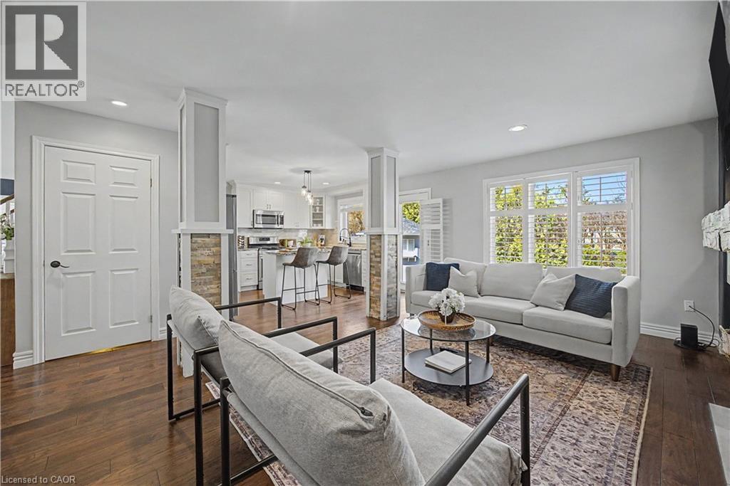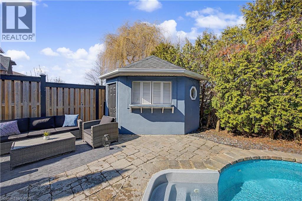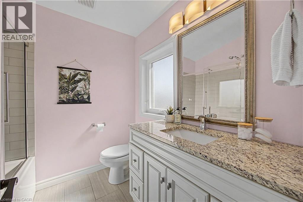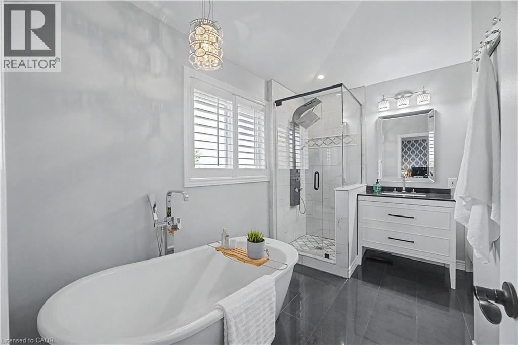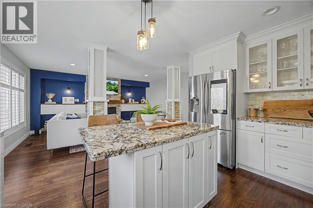 The perfect family home in the sought-after Stoney Creek Mountain, Leckie Park neighbourhood. Brimming with curb appeal, this 3-bedroom, 3.5 bathroom home offers over 3100 sq ft of finished living space. Tastefully decorated and thoughtfully updated, there’s nothing to do but move in. Soaring vaulted ceilings in the formal living and dining area create a bright and open feel. The family room features a cozy gas fireplace, built-in storage, and opens into the beautifully updated custom kitchen, complete with granite counters, a centre island with seating, and high-end appliances. Upstairs, you’ll find three well-sized bedrooms, including a spacious primary suite with a walk-in closet and a 5-piece, spa-like ensuite featuring double sinks, a glass shower, and a freestanding soaker tub. The fully finished basement offers plenty of storage, flexible living space, and a 3-piece bathroom. Step outside to your own private backyard retreat, complete with a heated inground pool and stone patio—ideal for relaxing or entertaining. The 2.5 car garage is insulated and equipped with a split unit for heating and A/C (2021). Additional features include hardwood flooring throughout the main and upper levels, pot lights, California shutters, main floor laundry, and updated bathrooms. Recent updates include the roof shingles (2022), eavestroughs and downspouts (2023), and pool liner and heater (2023). Conveniently located close to schools, parks, playgrounds, shopping, entertainment, transit, highway access, and scenic nature trails. (id:46441)