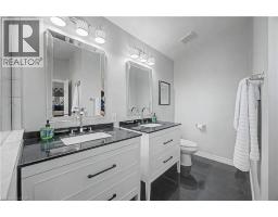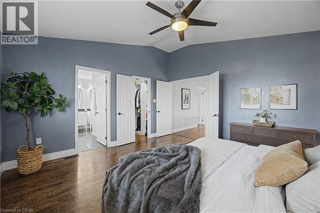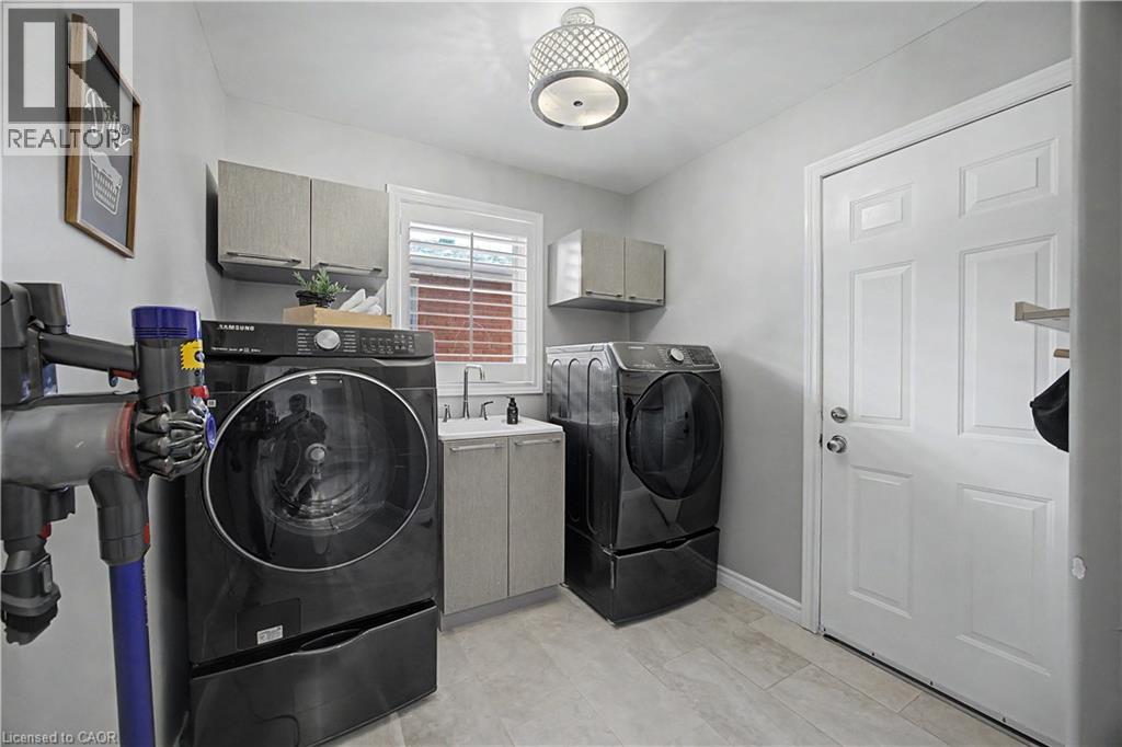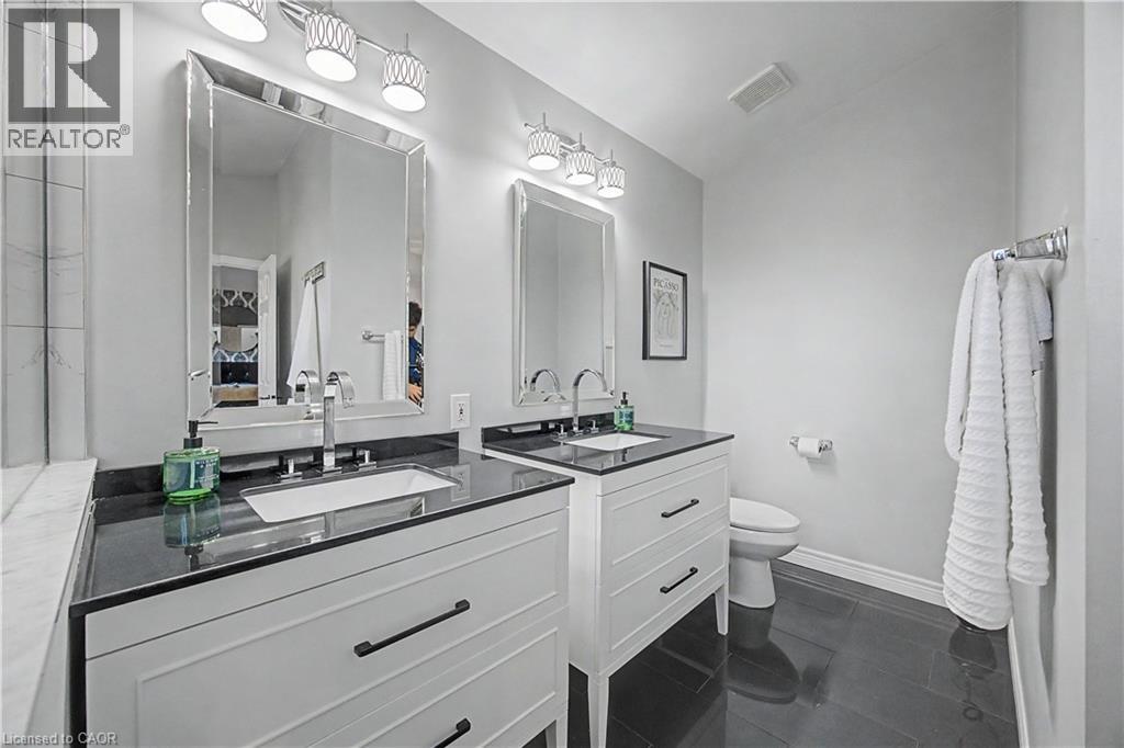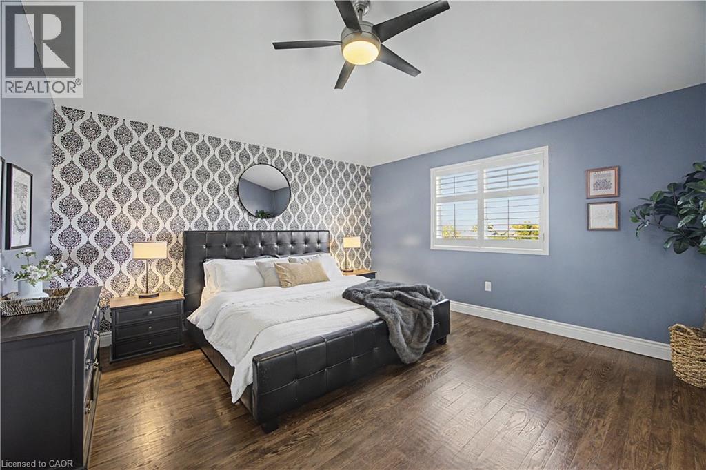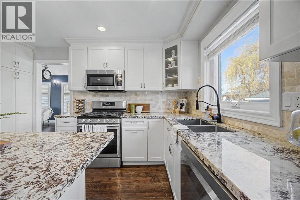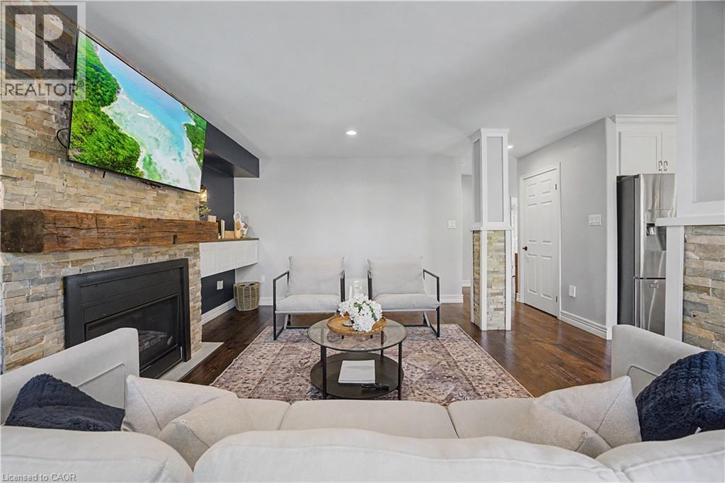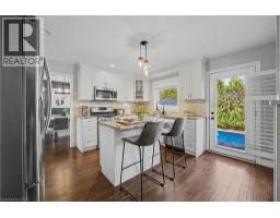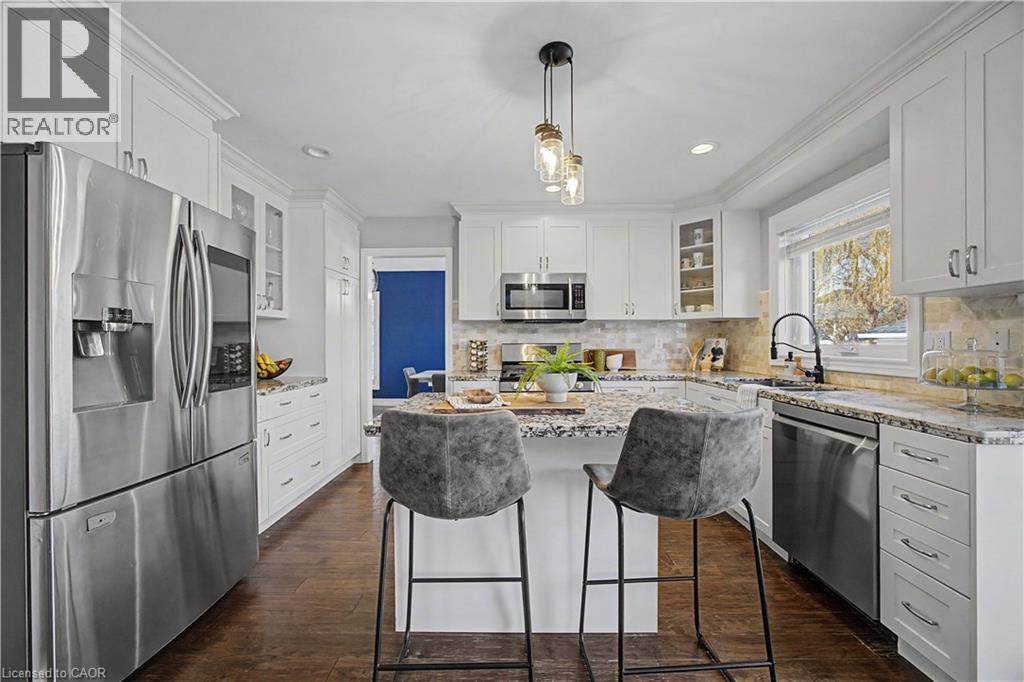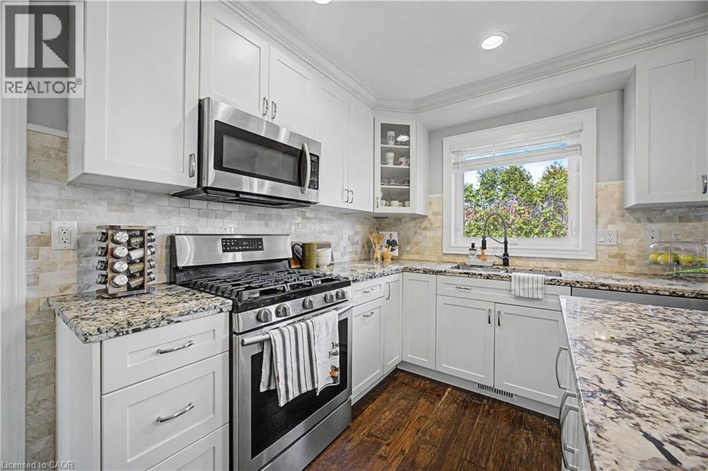 The perfect family home in the sought-after Stoney Creek Mountain, Leckie Park neighbourhood. Brimming with curb appeal, this 3-bedroom, 3.5 bathroom home offers over 3100 sq ft of finished living space. Tastefully decorated and thoughtfully updated, there’s nothing to do but move in. Soaring vaulted ceilings in the formal living and dining area create a bright and open feel. The family room features a cozy gas fireplace, built-in storage, and opens into the beautifully updated custom kitchen, complete with granite counters, a centre island with seating, and high-end appliances. Upstairs, you’ll find three well-sized bedrooms, including a spacious primary suite with a walk-in closet and a 5-piece, spa-like ensuite featuring double sinks, a glass shower, and a freestanding soaker tub. The fully finished basement offers plenty of storage, flexible living space, and a 3-piece bathroom. Step outside to your own private backyard retreat, complete with a heated inground pool and stone patio—ideal for relaxing or entertaining. The 2.5 car garage is insulated and equipped with a split unit for heating and A/C (2021). Additional features include hardwood flooring throughout the main and upper levels, pot lights, California shutters, main floor laundry, and updated bathrooms. Recent updates include the roof shingles (2022), eavestroughs and downspouts (2023), and pool liner and heater (2023). Conveniently located close to schools, parks, playgrounds, shopping, entertainment, transit, highway access, and scenic nature trails. (id:46441)