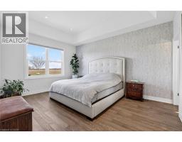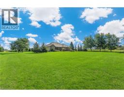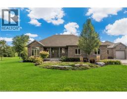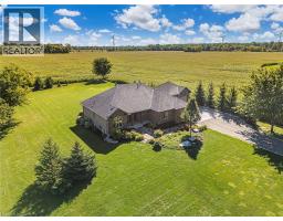 There are homes you walk into, and then there are properties that stop you before you even reach the front door. This 1,617 sqft bungalow showcases a timeless brick façade w/ over 3,000 sqft finished living space on a mature 1.5-acre country lot. A rare 24'x24' detached shop w/ spray foam insulation & in-floor heat delivers the bonus space buyers search years to find. Properties like this aren't easily replicated — everything is already here. Inside, hardwood flooring runs throughout the main level, anchored by a kitchen designed for those who love to cook & entertain. Featuring a gas cooktop, wall oven, granite countertops, ceiling-height white cabinetry w/ under-cabinet lighting, & a large island — this space is as functional as it is striking. The living room offers a gas fireplace & classic white mantel, complemented by a tray ceiling w/ crown moulding. The dining area leads to a covered composite deck w/ sweeping views of open farmland. The primary suite is complete w/ a custom walk-in closet & a glass-enclosed ensuite featuring a rain head shower, spray bar, built-in bench, & quartz vanity. 2 additional bedrooms — including one w/ a vaulted ceiling & arched window — are served by a stylish 4-piece bath w/ quartz counters. A mudroom w/ built-in storage & a 2-piece powder room adds everyday convenience. The lower level deserves its own spotlight. A sprawling rec room w/ pot lights & a fully equipped wet bar creates the ultimate entertaining space. A separate lounge w/ a stacked stone gas fireplace offers a cozy retreat. W/ a fourth bedroom, 3-piece bath w/ glass shower, spacious laundry room w/ custom cabinetry & oversized sink, & ample storage, this level functions as a complete second living space. Outdoors, the composite deck offers covered & open-air living, stepping down to interlock walkways & a beautifully maintained lot framed by mature trees & uninterrupted farmland views. This is a one-of-a-kind property that truly needs to be experienced in person. (id:46441)