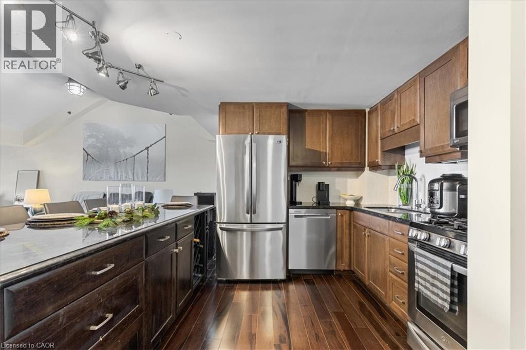 Welcome to unit 301 at The Summit! A stunning, bright, very clean & spacious 2 Bedroom, 2 Bath, luxury loft style Condo with over 1,100 sqft of living space in a very well kept, pet friendly building, minutes away from all conveniences in the highly sought after Hespeler neighbourhood. Featuring a lovely open concept layout, with vaulted ceilings in the living area, a patio door to a West facing balcony that allows much natural light to flood the living space. Newer neutral paint. The kitchen has granite counters, maple cabinets and stainless steel appliances including the gas stove. Also offering a walk in closet in the master bedroom, luxury pebble floor shower with jets and rainfall showerhead, in-suite laundry, exclusive large & secure storage locker, and a designated parking spot. Additional parking available. Building amenities include: Elevator, well equipped gym, party room with kitchen, common BBQ area and visitor parking! Located just minutes from the 401, close to schools, all amenities, a dog park, walking trails and the wonderful downtown Hespeler Village on the river. Don't miss out on this beautiful condo, book your showing today! (id:46441)