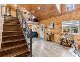 Discover the perfect harmony of privacy and convenience in this beautifully appointed 2-bedroom, 2-bathroom cabin-style retreat, complete with a spacious loft. Nestled between Minden and Haliburton and less than 10 minutes to Minden, this property offers the serenity of the forest while keeping you close to everyday amenities, the sought-after 5-lake chain, and easy access to Snowdon Park for endless outdoor adventures. Step inside to warm, wood-filled interiors featuring classic pine walls and ceilings, gleaming hardwood floors, and timeless rustic character. The open-concept design and lofted living area invite natural light to pour in, creating an airy, picturesque atmosphere ideal for relaxing or entertaining. Enjoy the ease of modern smart-home upgrades, paired with thoughtful features like a functional mudroom and a cozy outdoor fire pit area. A durable metal roof ensures worry-free living through every season. Situated on a level, year-round maintained road, the generous lot provides ample space for outdoor activities, family gatherings, or future outbuildings. Short-term-rental approved, this property stands out as both a welcoming year-round lifestyle escape and a smart investment opportunity. Embrace the charm, comfort, and convenience of this inviting woodland haven. Live the dream in your private woodland oasis, where rustic charm, modern comfort, and endless possibilities meet. (id:46441)