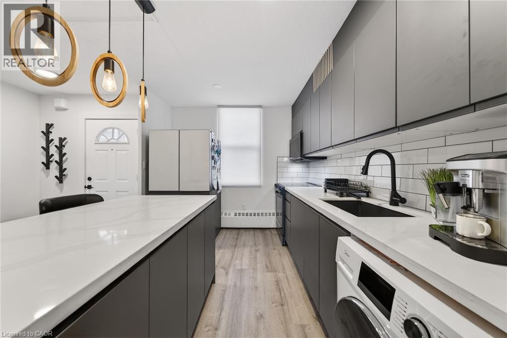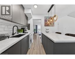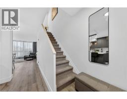 This completely renovated unit is the one you have been waiting for.  Beautifully updated with thoughtful touches throughout.  When you step through the door, you will find the kitchen has been opened up providing a breakfast bar, Stone Counters, a hidden dishwasher, extra cabinets, all-in-one washer & dryer, built-in microwave and elegant light fixture.  In the open concept living room/dining room there is a feature wall sure to capture your attention.   The surprises don’t stop there…when you head upstairs, the show stopper is the ultra modern bathroom with a lighted mirror and all the spa like jets in the shower.  3 Bedrooms include a spacious master bedroom with 2 other rooms that can be bedrooms or envision your office.  There are lots more upgrades for you to see in this unit, including flooring, baseboards, lightening and more.  On this side of the building, you have breathtaking views of Lake Ontario from your balcony.  The outdoor sky streets make this home feel like a townhouse.  It comes with underground parking, and a large storage locker.  There is also a pantry inside the unit.   Feel at home with Bike storage, community gardens and BBQ’s, covered basketball nets and a party room.  A major plus is that the building is pet friendly!  Close to golf, parks, trails, streams and just a minute to the Redhill and a few exits to the QEW or LINC. The New Confederation GO station is also just a few mins away for an easy commute. (id:46441)