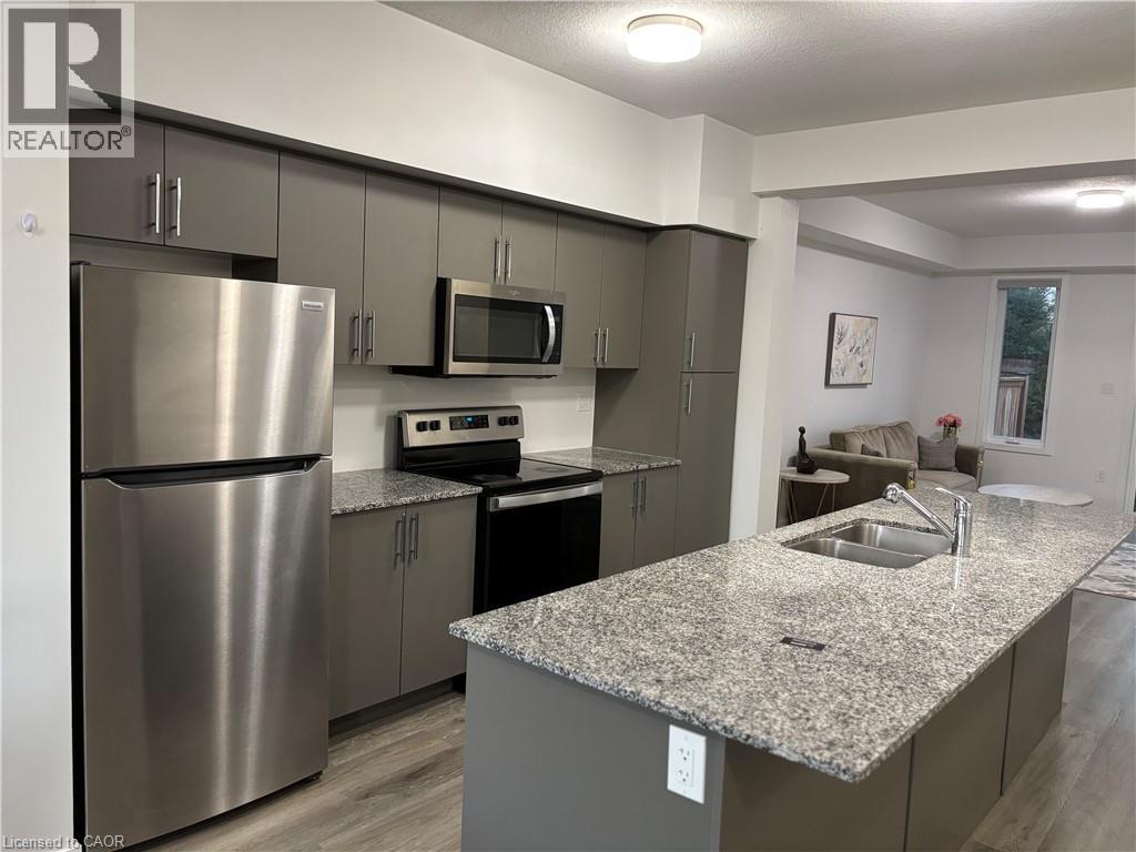 $397.23 MonthlyWelcome to 41-350 River Road! Only 3 years old, Modern townhouse built by Reid Heritage Homes located in the highly desirable Brook Village community of Cambridge. This townhouse Boasting a generous floor plan, features 3 bedrooms and 3 bathrooms, lots of natural light streaming through large windows. Kitchen features granite countertops, stainless steel appliances, a 10-foot island, upgraded cabinets, and soft-close doors. Spacious living room and dinning area with large windows. Step out onto the balcony to relax and enjoy some fresh air. There's also a loft area that can be used as an office or extra living space. The primary bedroom is bright and peaceful, with ensuite bath, walk in closet and big windows that let in lots of natural light. Third floor has two more bright bedrooms and 4 pcs main bath. Situated steps away from the water and Hespeler Village, and conveniently close to parks, bus stops, walking trails, and highway 401—making it easy to get around and enjoy the area. (id:46441)