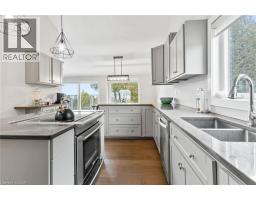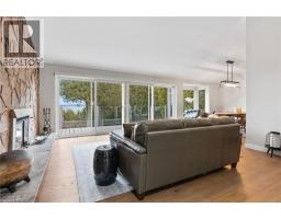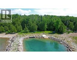 GEORGIAN BAY WATERFRONT| 6.59 ACRES | PRIVATE LAGOON — A truly rare offering on the pristine shores of Georgian Bay. This extraordinary 6.59-acre waterfront property blends natural beauty, privacy, and high-end living in one complete lifestyle package. Tucked along a quiet stretch of shoreline, the property features its own protected private lagoon—perfect for boating, swimming, or simply enjoying life by the water. The fully renovated bungalow showcases over $500,000 in thoughtful upgrades, with every detail curated for comfort and timeless design. Soaring vaulted ceilings and expansive windows flood the open-concept living space with natural light and panoramic bay views. A stunning floor-to-ceiling stone fireplace anchors the living area, while the chef’s kitchen—with granite countertops, stainless appliances, and walk-in pantry—flows seamlessly into the main living and dining zones, ideal for entertaining. The primary suite retreat is complete with a spacious layout and an ensuite featuring double vanity, glass shower, and bidet. The walkout lower level presents two generously sized rooms; the larger, complete with a 3-piece ensuite, offers flexible space ideal as a guest suite or games room, while the second room is conveniently located near an additional full bathroom—perfect for hosting, hobbies, or extended family stays. Step outside to a tiered flagstone patio framed by perennial gardens and serene trails that meander through your private forested acreage down to the bay. With geothermal heating and cooling, a water softener and filtration system, and an oversized double garage, the home is as practical as it is beautiful. Located just minutes to Owen Sound, Leith, Coffin Ridge Winery, and Cobble Beach Golf Resort—and less than an hour to Blue Mountain—this is Georgian Bay waterfront living at its finest. (id:46441)