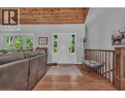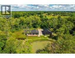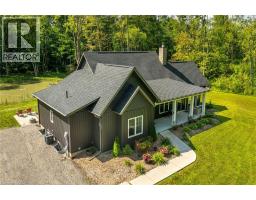 Perfect country package! Rare opportunity to own a secluded 52-acre multi-purpose property, frequented by deer, wild turkeys, rabbits, and various bird species. The land comprises mature forest and wetlands, including maple, ash, and oak trees, with nature trails and road frontages on three sides for privacy. The property features a 1,436 sq ft bungalow, custom built in 2020, with two main floor bedrooms, two and a half bathrooms, and an unfinished basement suitable for additional living space and more bedrooms. Additional structures include a 50’x30’x18’ workshop equipped with a car hoist, suited for hobbyists or contractors. The main floor has an open concept with a cathedral ceiling finished in tongue-and-groove pine, an eat-in kitchen with custom maple cabinetry, quartz countertops, a bay window, and stainless-steel appliances. The living room includes a wood fireplace, scraped hardwood floors, and patio doors to a rear deck overlooking the aerated pond and wooded area. The great room provides panoramic outdoor views through wall-to-wall sliding patio doors, a cathedral pine ceiling, and an electric fireplace. Both main floor bedrooms are spacious; the principal bedroom has an ensuite, walk-in closet, and deck access. The basement contains laundry facilities, a utility room, storage, and roughed-in plumbing for bathrm with sewage ejector. Notable amenities include a hi-eff propane furnace, central air, a 2,500-gal water cistern, indoor and outdoor sump pumps, a modern septic system, and 100-amp electrical service. The property is situated on a year-round paved road in a tranquil setting surrounded by a serene forest, with landscaped grounds, vibrant perennial gardens, and a large driveway that can accommodate multiple vehicles and a boat or RV. Located near Dunnville’s amenities, it is within a 30–60 minute drive to Hamilton and Niagara. This property offers a cottage-like ambiance for those interested in outdoor recreation and nature! (id:46441)