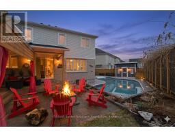 Experience the home and lifestyle you've always dreamed of. This 3,100+sqft sanctuary was crafted for entertaining, from the backyard oasis with an in-ground pool, hot tub, and covered outdoor kitchen, setting the stage for summer gatherings, to the finished basement featuring a wrap-around bar and custom theatre room. Arrive to an interlock driveway, covered front porch, manicured gardens with an irrigation system, and poured concrete walkways guiding you to your private retreat. Inside, elegance and warmth greet you at every turn. A grand foyer with 9-foot ceilings and board-and-batten accents welcomes you, flowing seamlessly into a formal dining room with rich hardwood floors and custom built-ins, perfect for gatherings. The fully custom kitchen boasts rich cabinetry, granite counters, a custom range hood, wine fridge, built-in microwave, oversized island with seating for five, ample pantry space and sliding sliding doors opening to the covered outdoor kitchen and BBQ area. The open-concept living room boasts hardwood floors and built-in shelving, while the main floor is rounded out by an office/den, powder room and a laundry/mudroom with wood counters, stone backsplash, built-in bench and storage area. Upstairs, enjoy a loft-style family room, four generous bedrooms, and three full bathrooms. The primary suite features a modern accent wall, oversized walk-in closet, and spa-like ensuite with soaker tub, walk-in shower and dual sinks. Updated bathrooms feature textured subway tile, granite countertops, and vessel sinks.The finished basement elevates entertainment with a wrap-around bar, games room, and custom theatre-perfect for unforgettable gatherings. Situated in a family-friendly neighbourhood near schools, trails, parks, the 401, and Huron Natural Area, this home is more than a house-it's a lifestyle of elegance, leisure, and cherished moments with those you love. (id:46441)