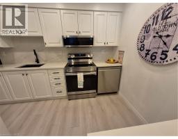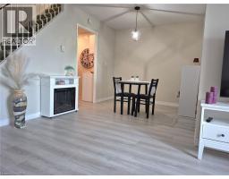 Welcome to a well-maintained renovated two level condo with 3-bedrooms, 1.5 bath in the north end of Brantford. This condo offers approximately 1199 sq.ft. of living space. Renovated in 2024/2025 including new electrian panel/wiring, high quality 12mm laminate flooring throughout, numerous pot lights, high baseboards, quality appliances, new toilets & vanities. The main level features a sun filled living room with pot lights & walk-out to balcony, inviting dining room, an updated white kitchen with stainless steel appliances, pot lights, upgraded sink & faucet & a main floor bedroom that can be used as den/office & reno'd 2pc bath & closet. The reno'd upper level comes complete with two spacious bedrooms, the four piece bath, 2nd balcony & the in-suite laundry for added convenience. The large master bedroom has wall to wall windows, walk in closet & walk-in storage room. Condo fees include heat, hydro, water, building insurance, exterior maintenance, landscaping, recycling & 2 parking spaces - 1 underground & 1 above ground. Building amenities include an exercise room, party room, library/extra laundry area. Just minutes to Highway 403 & numerous shopping centres, restaurants, schools, public transit & walk to Gretzky Community Sports Centre. (id:46441)