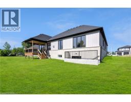 Looking for a brand new, fully upgraded bungalow, in a peaceful country setting? This property will exceed all expectations. Offering a 10-ft, tray ceiling in the Great Room, an 11-ft foyer ceiling, 9-ft in the remaining home and hardwood and tile floors throughout, the home will immediately impress. The primary bedroom has a walk-in closet and its ensuite has a tiled glass shower, freestanding tub and double vanity. The Jack and Jill bathroom serves the other two main floor bedrooms and has a tiled tub/shower and a double vanity, as well. The red oak staircase has metal balusters adding warmth equal to the 56 gas linear fireplace of the great room. The partially finished basement has the home's fourth washroom, and two extra bedrooms, adding to the three on the main floor. From the basement, walk out to the back yard where you'll experience peaceful tranquility. There are covered porches on both the front and back of the home, a double wide garage, and a cistern located under the garage. The electric hot water tank is owned holding 60 gallons, and the property is connected to sewers. Close to conservation parks, less than 10 minutes to the larger town of Lincoln for all major necessities, and less than 15 mins away from the QEW with access to St. Catharines, Hamilton, a multitude of wineries, shopping centres, golf courses, hiking trails, Lake Ontario and the US border. (id:46441)