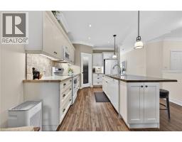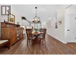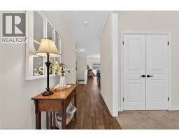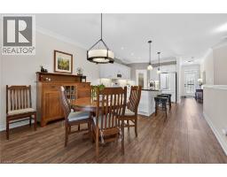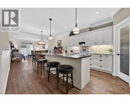 Tucked away in a private cul-de-sac enclave in Smithville, this stunning freehold bungalow townhome features peaceful living with breathtaking panoramic sunset views year-round over open farm fields. Enjoy your own quiet outdoor retreat on the private rear patio, complete with a hard-covered gazebo, perfect for relaxing or entertaining. Inside, the home features 9-foot ceilings, and a bright, open-concept layout, enhanced by beautiful, upgraded lighting throughout. The gorgeous kitchen is a true focal point, showcasing a large island, coffee station, walk-in pantry, soft-close cabinetry, and under-cabinet lighting, ideal for both everyday living and hosting. Premium Torlys laminate flooring flows seamlessly throughout the main living areas. The living room features a coffered ceiling with patio doors to the private rear patio. With 2 bedrooms and 1.5 bathrooms, this home is thoughtfully designed for comfort and functionality. The primary suite is a true retreat, featuring a stylish 3-piece ensuite with a glass shower along with soundproof insulation between the primary bedroom and living area for added privacy. Additional highlights include main floor laundry and convenient inside entry from the single-car garage. A perfect blend of low-maintenance living, modern upgrades, and serene surroundings. This is a rare opportunity in a sought-after community. Minutes to local amenities, schools and park. Small road fee includes landscaping/maintenance/snow removal of common area as well as irrigation system and visitor parking. (id:46441)