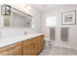 Welcome to this beautifully built semi-detached townhome offering approximately 1,600 sq ft of modern living space on a 30 x 104 ft lot, ideally located just minutes from the ski hills and the four-season recreation this area is known for. The home offers strong curb appeal with professionally landscaped gardens leading to a covered front porch - a perfect place to enjoy your morning coffee or unwind after a day outdoors. The upgraded entry door sets the tone for the stylish finishes throughout. Inside, the layout is both functional and inviting. A bright front room overlooking the street works perfectly as a home office, reading nook, or sitting area.The main living space features 9ft ceilings, upgraded interior doors, pot lights & large windows that fill the home with natural light. Warm wood flooring flows through the living & dining areas, creating a comfortable & welcoming atmosphere. The family room is highlighted by a beautiful shiplap feature wall with an electric fireplace - an ideal spot to relax after a day on the ski hills. The adjoining dining area offers plenty of room for entertaining.The upgraded kitchen includes extended cabinetry with crown molding, a full-depth cabinet above the fridge & a pantry, providing excellent storage and functionality.Upstairs offers three spacious bedrooms & two full bathrooms. The primary suite accommodates a king-size bed & includes a walk-in closet & private ensuite with a glass walk-in shower. A second 4PC bathroom serves the additional bedrooms. The unfinished lower level provides future potential & includes a rough-in for an additional bathroom. Built just one year ago, the home offers modern construction & low-maintenance living. Additional features include a full brick front exterior, 200-amp electrical service & a single-car garage with inside entry and automatic opener. With skiing, hiking, biking, and Blue Mountain just minutes away, this home offers comfort, convenience, and a true four-season lifestyle. (id:46441)