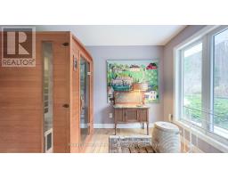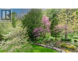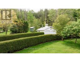 Surround yourself with serene nature and unparalleled views of the beautiful Maitland River. This private, unassuming riverfront property offers a unique blend of history, the Maitland River, and modern comfort. Located in the village of Benmiller, just 10 minutes to Goderich - with incredible sunsets and 3 beaches! Spanning two parcels, this property includes over 7 acres of bushland along the Maitland Trail, and bordering the Falls Reserve Conservation Area, and a acre parcel including the home, spring fed pond and professionally landscaped grounds. The G2G trail is close by, offering cycling and hiking. Whether you're hiking, fishing, kayaking, cross-country skiing, or strolling to the nearby Benmiller Inn, this location offers endless outdoor adventures. The home features: 4 bedrooms, 4 baths, including a primary suite with a walk-in closet, ensuite, and stunning river views. The kitchen offers modern appliances, Caesarstone counters, and a walk in pantry. Hardwood ash floors grace the main living area and Birds Eye Maple floors in the bedrooms. The open living space offers a cozy Valor fireplace and you'll never tire of the views from the expansive windows. The screened in porch overlooks the gardens and river. Additional highlights include an eco-friendly heat pump and diamond steel roof. Heat pump offers heating and cooling. There is an attached double garage plus a detached, insulated double garage with wood stove making an ideal heated workshop. Originally built in 1963 by renowned artist Jack McLaren, this home reflects the spirit of creativity and tranquility. McLaren chose this idyllic location for his residence a testament to its unique allure. This is a truly unique purchase opportunity, hidden along the Maitland River shoreline. (id:46441)