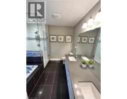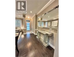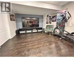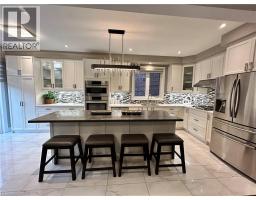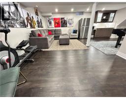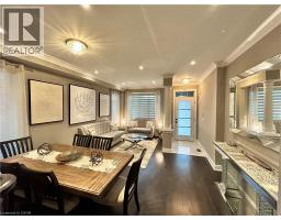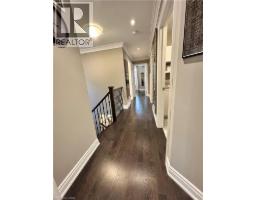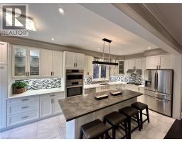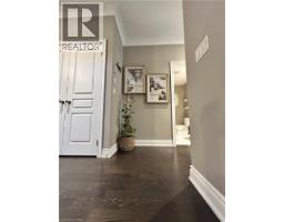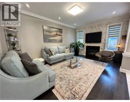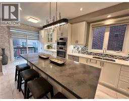 Nestled between the James Snow Parkway and Trudeau Drive, this tastefully upgraded link-detached home is ideally located close to schools, parks, shopping, groceries, and major highways—perfect for a growing family. Offering 4 bedrooms and 3.5 bathrooms, the home features a finished open-concept basement with a spacious great room, wet bar, office/den, pot lights, and a 3-piece bath. The extended chef’s kitchen showcases stainless steel appliances, Caesarstone countertops, a large eat-in island, custom soft-close cabinetry, tiled backsplash, and a walkout to a deck overlooking a paver-stone backyard with an 8' x 10' garden shed. The main floor includes a family room with gas fireplace and a separate living and dining area, enhanced by modern lighting, upgraded handrails with wrought iron pickets, crown mouldings, high baseboards, California shutters, and zebra blinds. Upper-level laundry offers upgraded appliances and linen storage. Hardwood floors throughout, with matching laminate in the basement. Exterior pot lights and fence lighting on timers. Parking for three cars and EV plug-in in the attached garage. (id:46441)