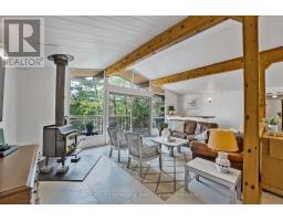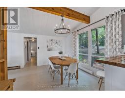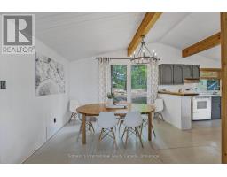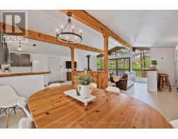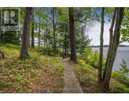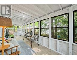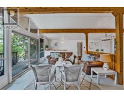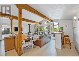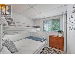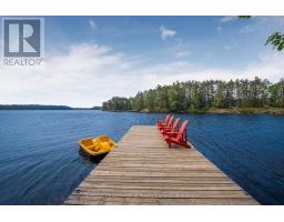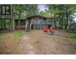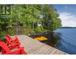 Private Point Retreat with Panoramic Sunrise & Sunset Views. Welcome to your dream getaway, perfectly positioned on a private point of land with uninterrupted lake views from sunrise to sunset. This idyllic cottage offers all-day sun and unmatched privacy, with no neighbouring docks in sight just you, the water, and the sky. Spend long, sun-soaked days on the dock, where you can leap into deep water from the end or wade in gradually via the shallow, sandy shoreline ideal for little ones. Evenings are just as magical, gathered around the landscaped lakeside campfire, stargazing with loved ones. Step inside through the charming sunroom/mudroom, an inviting space to enjoy your morning coffee while soaking in the view. The open-concept interior features a spacious great room with vaulted ceilings, seamlessly blending the kitchen, breakfast bar, dining, and living areas all with stunning lake vistas. The cottage offers three bedrooms, including two with vaulted ceilings for added charm and a bunk room made for childhood adventures and sleepovers. Step outside to a partially covered deck perfect for lounging, BBQs, and al fresco dining. Paddle across the lake to a nearby beach and park, or stay in and enjoy excellent fishing and watersports right from your own shoreline. Located just 5 minutes from the local grocery store, hardware store, LCBO, and restaurants, and a short drive to Parry Sound, Bala, and Port Carling, this is the ultimate blend of seclusion and convenience. Cottage memories begin here. (id:46441)