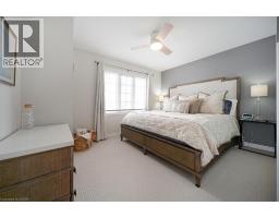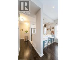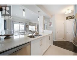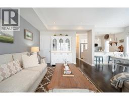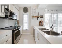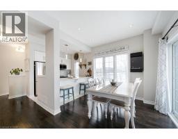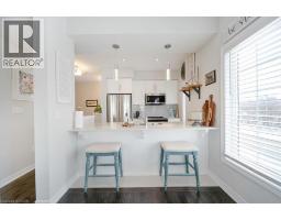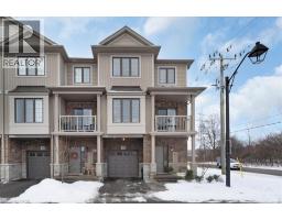 This bright end-unit condo townhome delivers clean lines, thoughtful upgrades, and a smart vertical layout designed for today’s lifestyle. With exterior maintenance covered by the condo fee and visitor parking conveniently located across from the home, everyday living feels effortless from the start. The entry level offers a den or home office, ideal for remote work, a quiet retreat, or flexible living; plus convenient inside access from the garage. Upstairs, the heart of the home opens into a light-filled, open-concept kitchen, dining, and living room. Engineered hardwood floors, pot lights, and a cohesive flow create a space that’s equally suited for entertaining or unwinding. The kitchen is both stylish and functional, featuring stainless steel appliances, quartz countertops, floating shelves, ceramic flooring, and a breakfast bar open to the dining area. Sliding doors lead to a private balcony perfect for morning coffee, casual meals, or a quiet moment to recharge. A two-piece bath and laundry complete this level for everyday convenience. The upper floor is designed with flexibility in mind. The primary bedroom features an oversized closet and a sleek ensuite with a glass-enclosed super shower. A second bedroom and full bathroom offer options for a nursery, an adult child, guests, or visiting family, all without sacrificing comfort or privacy. Move-in ready, filled with natural light, and finished with today’s modern touches, this home offers low-maintenance luxury in a location that keeps you connected to Ancaster, the West Mountain, Bennett’s Apples, Ancaster Power Centre, and quick highway access. (id:46441)