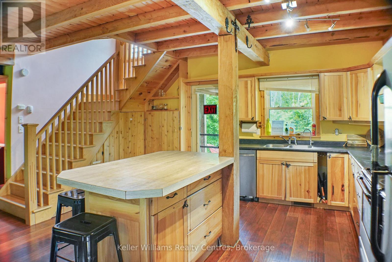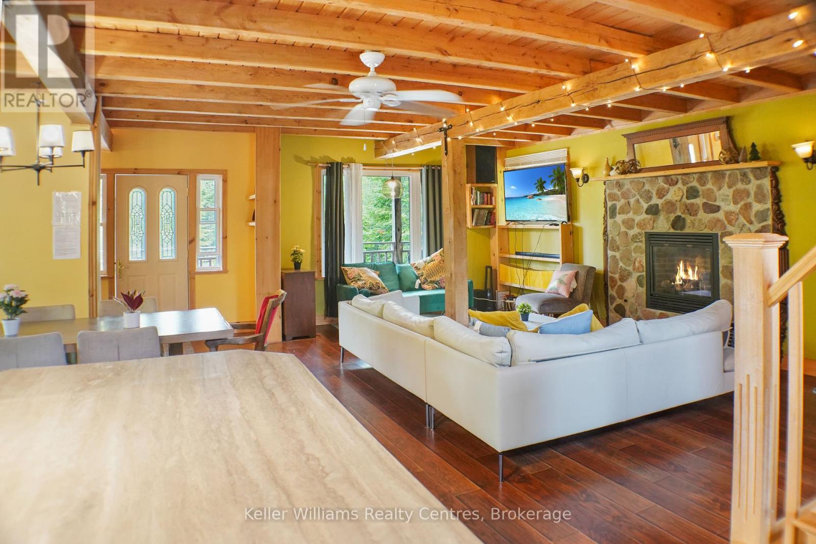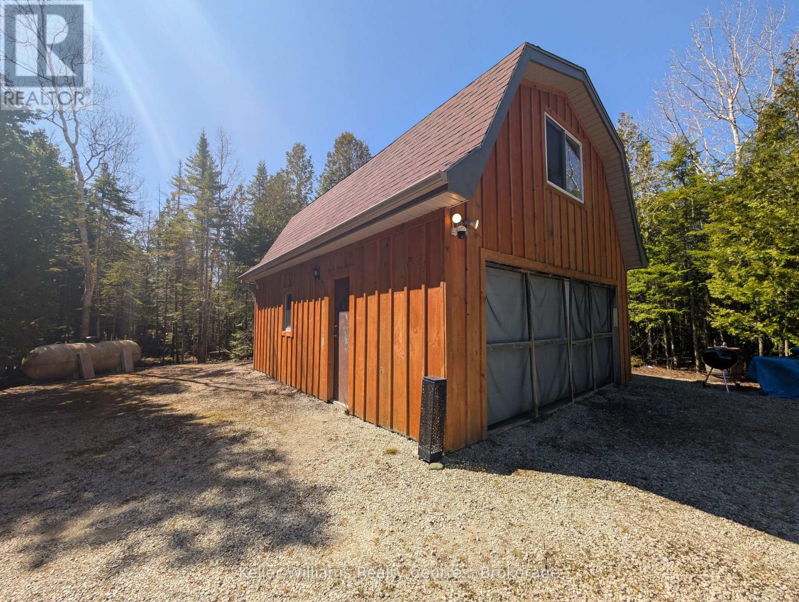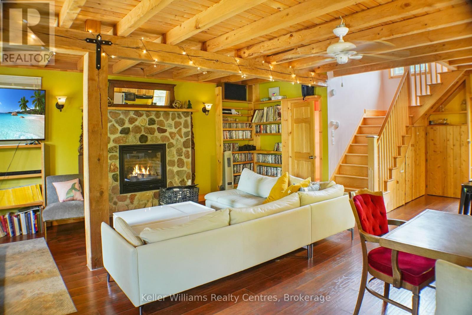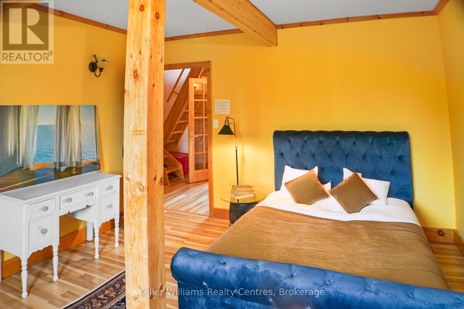 Custom-built in 2015, this exceptional three-level home blends modern design with rustic charm. Offering over 2,000 sq ft of wraparound decking, the property invites you to embrace stunning water views and serene sunsets. Engineered for year-round comfort, the home features R30 wall and R45 ceiling insulation, a new water system, as well as a high-efficiency propane furnace paired with a cozy fireplace. Step inside to discover an open-concept main floor that showcases striking oak and hemlock post-and-beam ceilings, a gorgeous hickory kitchen complete with a spacious island, and stylish laminate flooring throughout. Each level boasts convenient walkouts, providing private access to a treed oasis and multiple view points, including a top-floor deck designed for enjoying sweeping water vistas. Adding to its appeal is a bonus detached garage with a loft, which offers versatile usage. Whether you entertain guests, pursue hobbies, or explore its potential as an accessory dwelling unit, this feature enhances both your lifestyle options and the property's investment value. Situated near two water access points, you can easily swim, kayak, or launch your boat without the premium of a waterfront listing. Embrace the Bruce Peninsula lifestyle you've been waiting for while capitalizing on a great investment opportunity that promises both comfort and endless possibilities. (id:46441)