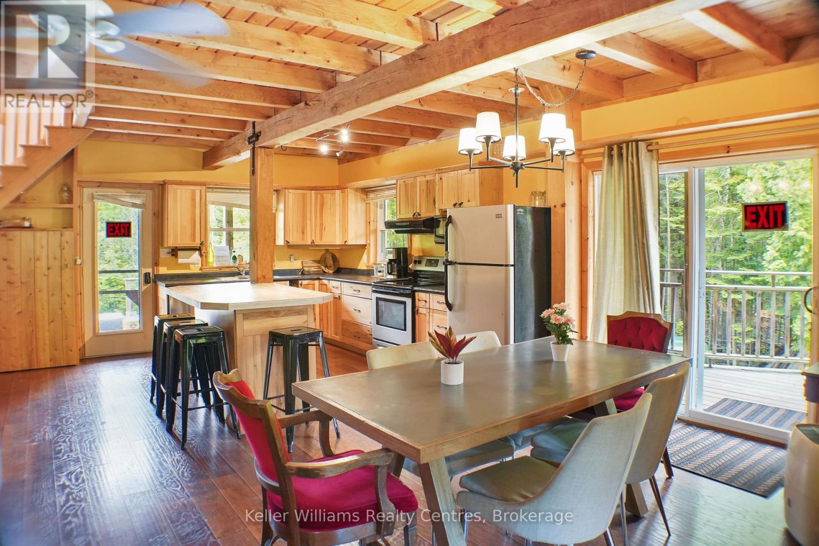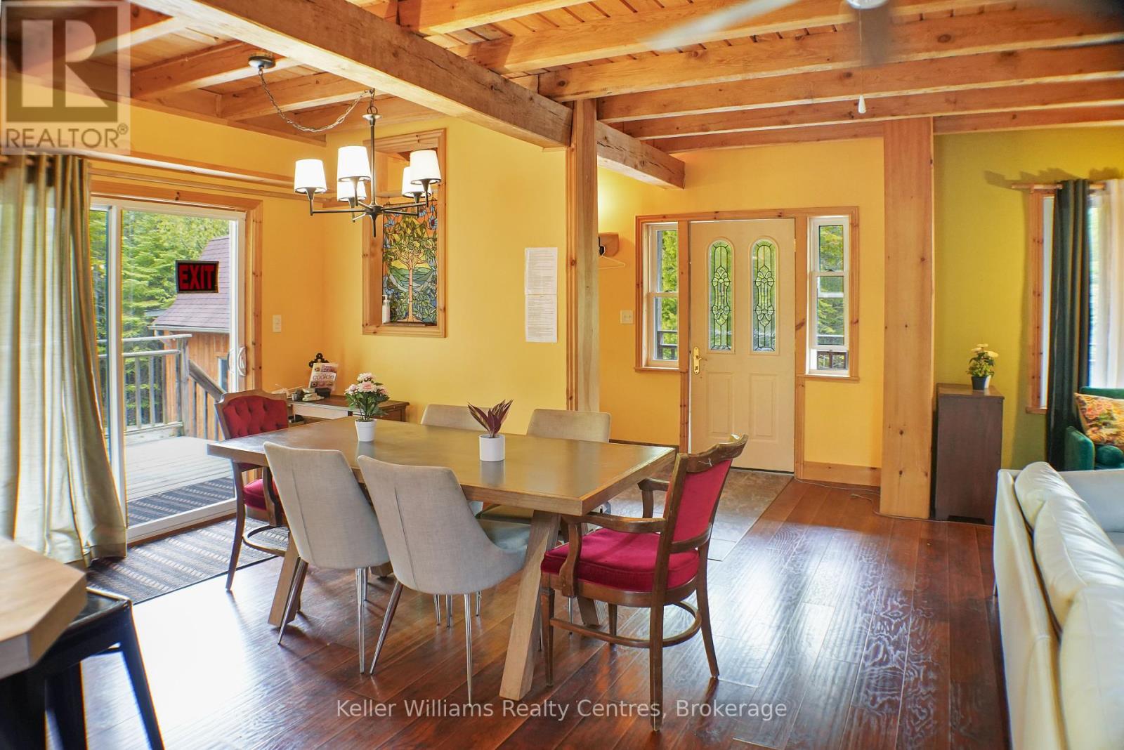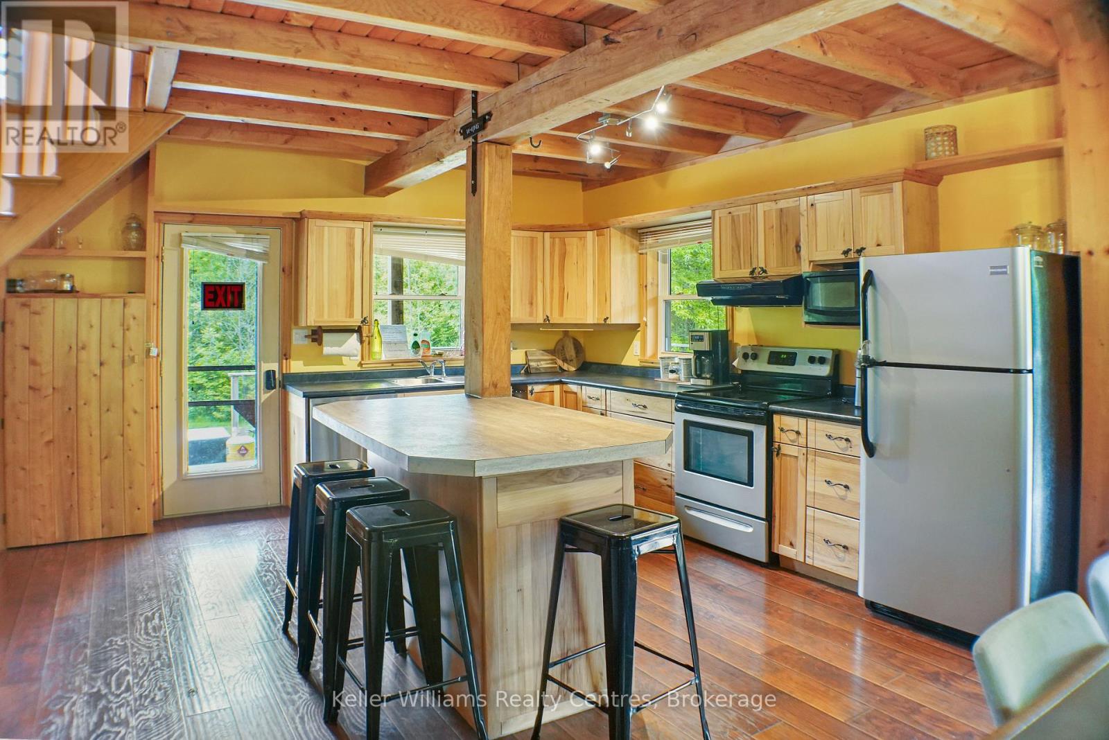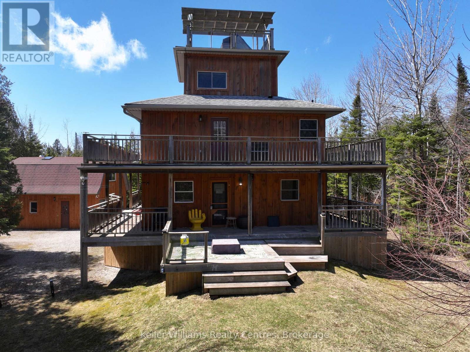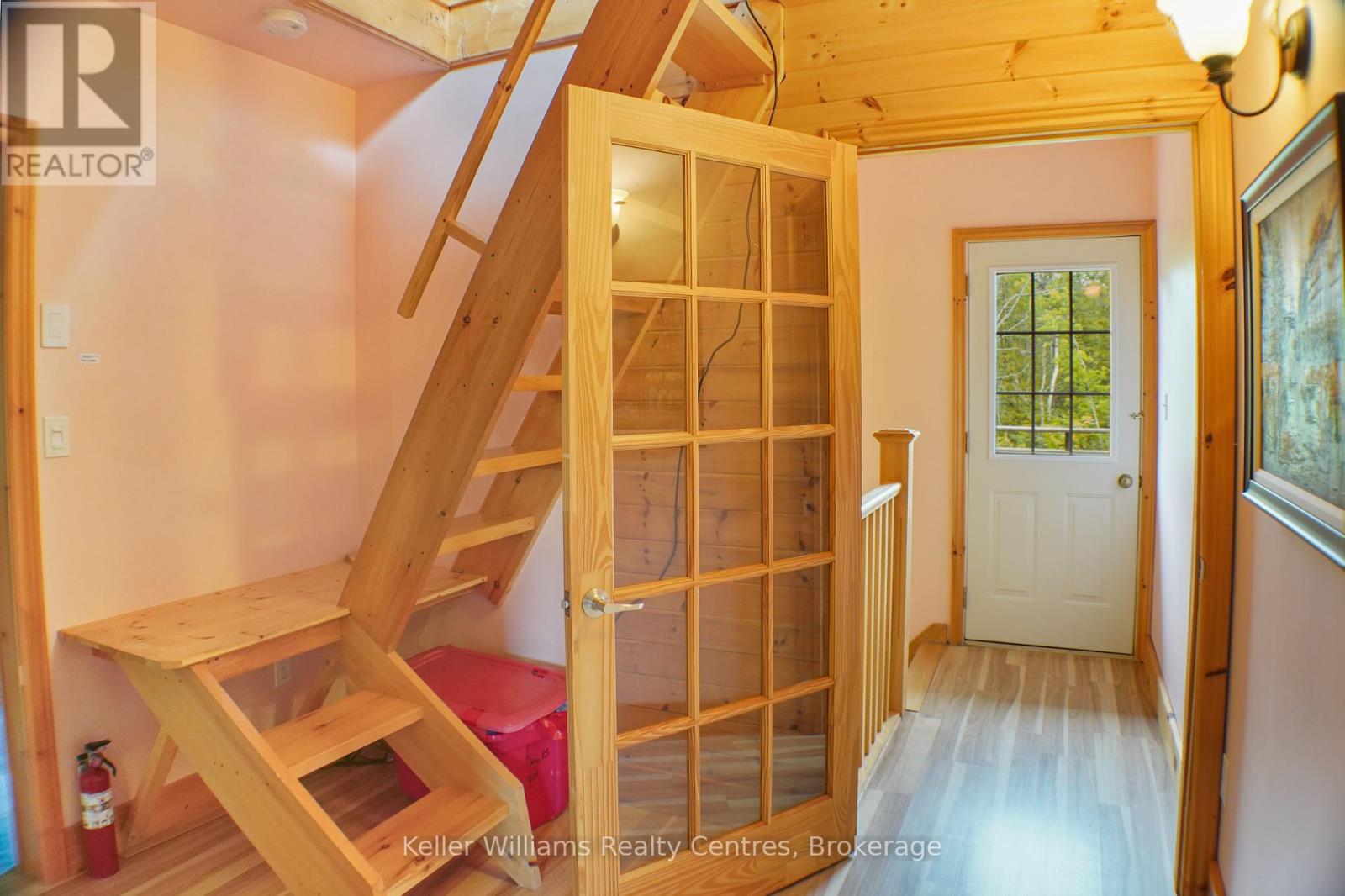 Custom-built in 2015, this exceptional three-level home blends modern design with rustic charm. Offering over 2,000 sq ft of wraparound decking, the property invites you to embrace stunning water views and serene sunsets. Engineered for year-round comfort, the home features R30 wall and R45 ceiling insulation, a new water system, as well as a high-efficiency propane furnace paired with a cozy fireplace. Step inside to discover an open-concept main floor that showcases striking oak and hemlock post-and-beam ceilings, a gorgeous hickory kitchen complete with a spacious island, and stylish laminate flooring throughout. Each level boasts convenient walkouts, providing private access to a treed oasis and multiple view points, including a top-floor deck designed for enjoying sweeping water vistas. Adding to its appeal is a bonus detached garage with a loft, which offers versatile usage. Whether you entertain guests, pursue hobbies, or explore its potential as an accessory dwelling unit, this feature enhances both your lifestyle options and the property's investment value. Situated near two water access points, you can easily swim, kayak, or launch your boat without the premium of a waterfront listing. Embrace the Bruce Peninsula lifestyle you've been waiting for while capitalizing on a great investment opportunity that promises both comfort and endless possibilities. (id:46441)