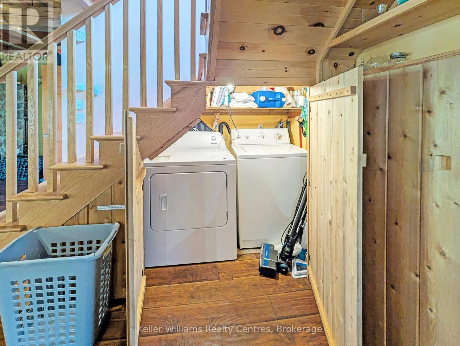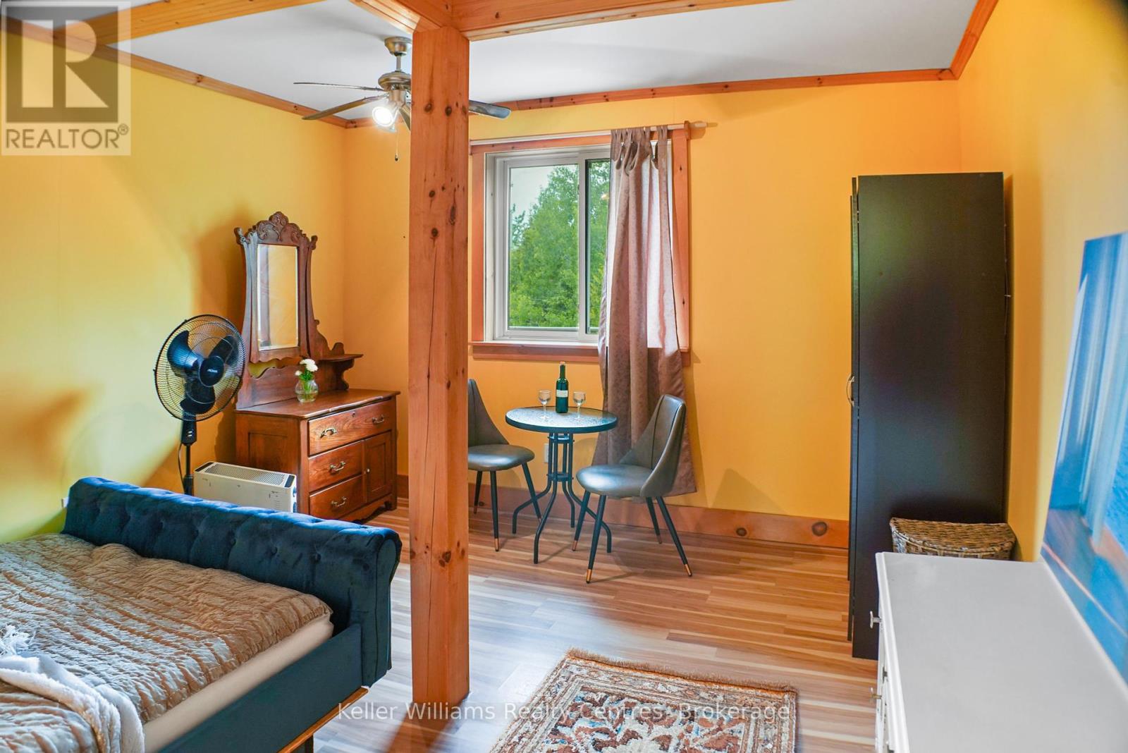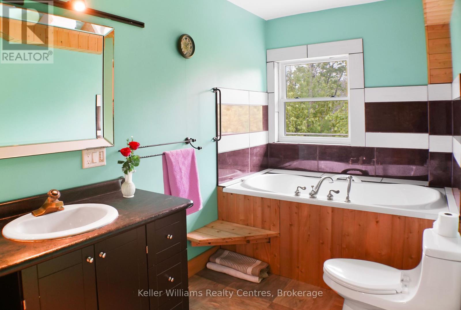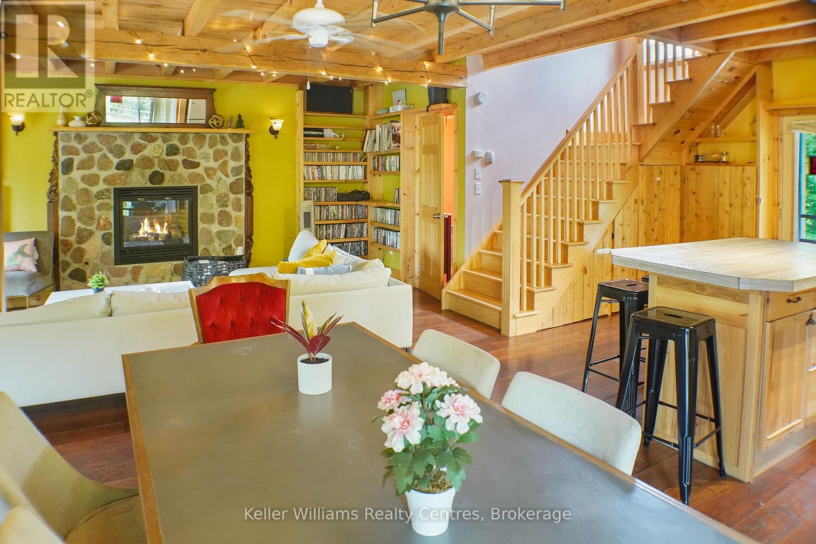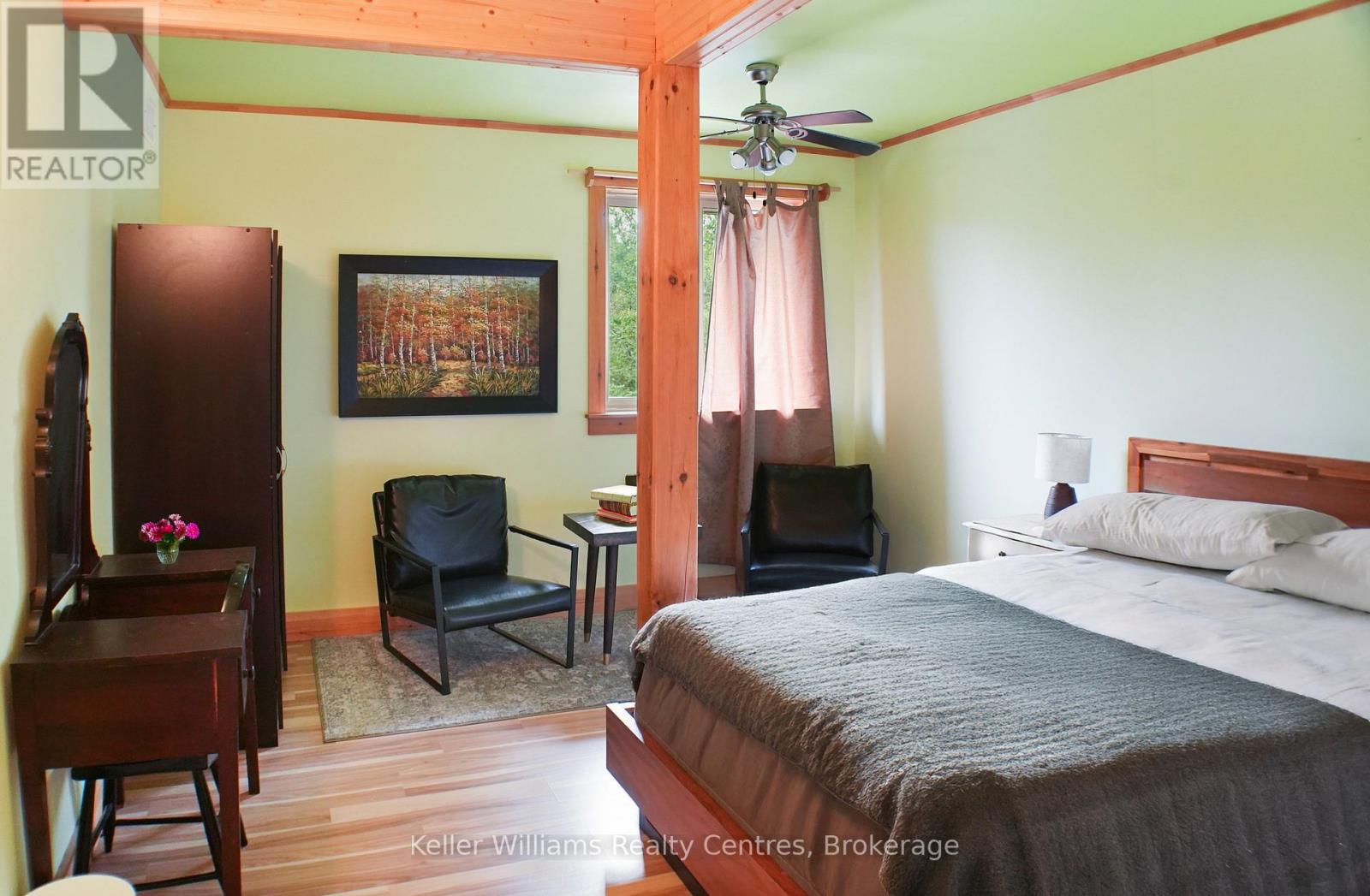 Custom-built in 2015, this exceptional three-level home blends modern design with rustic charm. Offering over 2,000 sq ft of wraparound decking, the property invites you to embrace stunning water views and serene sunsets. Engineered for year-round comfort, the home features R30 wall and R45 ceiling insulation, a new water system, as well as a high-efficiency propane furnace paired with a cozy fireplace. Step inside to discover an open-concept main floor that showcases striking oak and hemlock post-and-beam ceilings, a gorgeous hickory kitchen complete with a spacious island, and stylish laminate flooring throughout. Each level boasts convenient walkouts, providing private access to a treed oasis and multiple view points, including a top-floor deck designed for enjoying sweeping water vistas. Adding to its appeal is a bonus detached garage with a loft, which offers versatile usage. Whether you entertain guests, pursue hobbies, or explore its potential as an accessory dwelling unit, this feature enhances both your lifestyle options and the property's investment value. Situated near two water access points, you can easily swim, kayak, or launch your boat without the premium of a waterfront listing. Embrace the Bruce Peninsula lifestyle you've been waiting for while capitalizing on a great investment opportunity that promises both comfort and endless possibilities. (id:46441)
