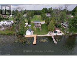 This charming three-season lakefront cottage on Chesley Lake offers a perfect getaway for recreational water sports, fishing, boating, and swimming. The cottage features two bedrooms, a kitchen, a bathroom, a living room, and a bonus room/enclosed sunroom with a fantastic lake view. The newer deck off the sunroom is ideal for enjoying meals, spending time with family and friends, or simply relaxing. The cottage and boathouse both boast a "Superior Steel Roofing System" metal roof, installed just four years ago. The boathouse, measuring 12' x 20', includes an overhead door, a poured concrete floor, hydro, and extra storage in the loft, offering great potential. Don't miss this opportunity to own a piece of waterfront property on beautiful Chesley Lake! Property being Sold AS IS WHERE IS as Seller has never lived in the property. (id:46441)