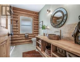 The 'Last Resort' is a perfect blend of modern living in a gorgeous home, with over 675' of riverfront, wooded trails and privacy on 6.37 acres in the beautiful town of Southampton. Crafted in 2017 this 9" Eastern White Cedar log home boasts over 2400 sq.ft. of premium living space with a casual elegance that only a log home offers! The great room is flooded with natural light from oversized patio doors and windows that extend to the peak of the cathedral ceiling. The Scandinavian wood burner stove is a functional as it is pretty! The large centre island in the kitchen will attract family and friends while the wormy maple kitchen with huge pantry cupboard, floating shelves and stainless appliances will intrigue the most discerning chef! The main floor office could be a bedroom with access to the covered patio and hot tub through the patio doors. Full bath with walk-in shower! Large main floor laundry with wall to wall closets! The second storey offers a family room loft that overlooks the great room and separates the primary suite with a private balcony to watch the stars, ensuite and walk-in closet from the 2nd and 3rd bedrooms with a full bath and sitting area perfect for yoga, exercise or to cozy up with a book. The heated oversized double garage has an overhead rear door, stainless steel fish cleaning station with sink, perfect for preparing the catch of the day from the river! In-floor radiant heat throughout the polished concrete floor is as economical as it is beautiful! Covered patio, hot tub, fire pit and lots of green space for outdoor fun! Stroll to the river's edge with your own private dock and endless trails. There's another fire pit by the river where you can look west and enjoy the sunsets and watch the boats and fishermen! The grounds and gardens feel like you are in a country paradise however you are only 5 blocks to downtown! Fenced yard. 2 garden sheds with wood storage. Riverfront, privacy, wooded trails and a spectacular home! (id:46441)