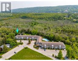 $446.59 MonthlyThis ideally located ground floor 1 bedroom end unit condo has just been fully renovated to include new kitchen with ceiling high cabinets, two large pot drawers, double sink with six foot island. New luxury vinyl flooring, freshly painted, upgraded trim and baseboards. New electrical, new water heater and new baseboard heaters which are backups to the recently serviced gas fireplace, updated vanity and new ceramic floor tile in the 4 piece bathroom complete the renovations. Personal outside storage unit adjacent to patio to accommodate all your sports equipment and patio items. Amenities include: inground outdoor pool, sauna, fitness room, bike racks, laundry, kayak/canoe racks, new outdoor fire pit with patio, convenient mailboxes including courier/Amazon locked drop boxes in lobby, guest parking and unassigned owner parking allowing for multiple vehicles if needed. The Georgian Trail borders the back of the property with only a few steps from two of the short paths to the trail, view of the water from the condo and steps to Georgian Bay and a short walk to convenience store and Northwinds Beach. Minutes to Collingwood, Blue Mountain and Thornbury. Economical weekend or full time living - either option is worth consideration. (id:46441)