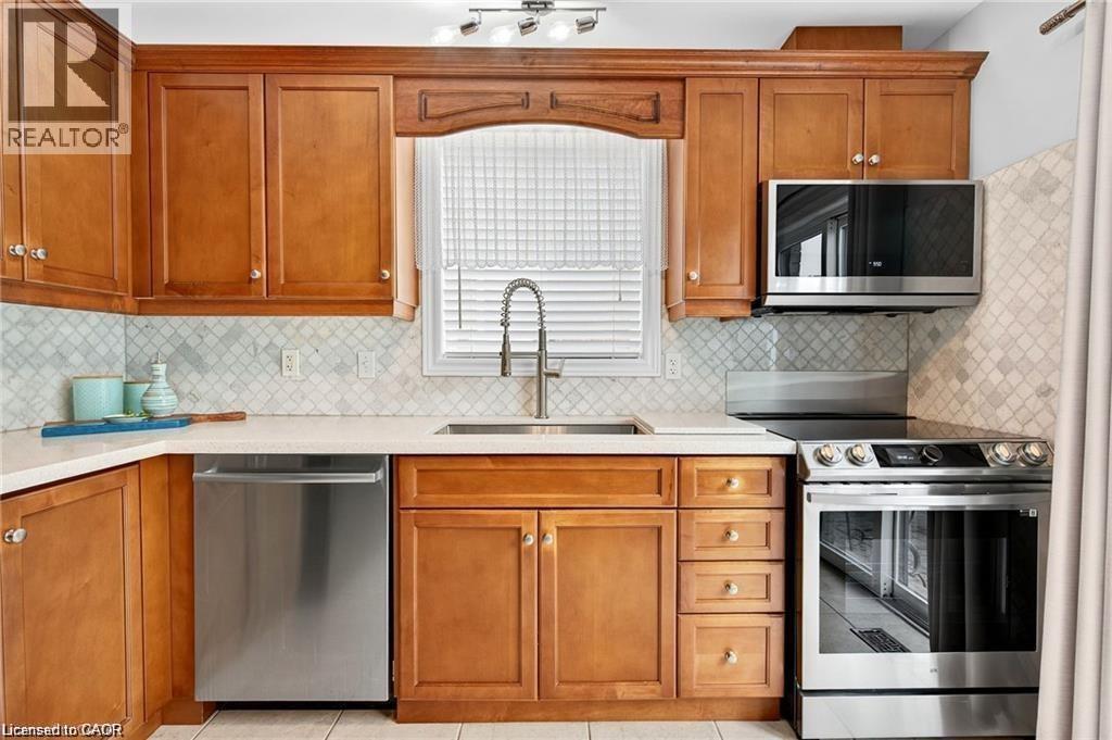 Welcome to this John Bruce Robinson quality-built home, ideally situated in one of Binbrook’s most desirable pockets. Set on a quiet, tree-lined street with no sidewalks, the property offers both charm and privacy. The exterior features an interlock stone driveway with front, side, and rear pathways, beautifully landscaped yards with a gazebo, shed, raspberry bushes, and a vegetable garden—reflecting true pride of ownership. A natural gas garage heater adds comfort and convenience year-round. Inside, the main floor provides a spacious and functional layout, including a separate dining room with a feature wall, a cozy living room with a gas fireplace, an eat-in kitchen with quartz countertops and backsplash, plus direct access to the backyard. A convenient main floor laundry room and 2-piece bath complete the level. Upstairs, you’ll find three well-appointed bedrooms, including a primary retreat with a walk-in closet and 4-piece ensuite. Two additional bedrooms share a second 4-piece bath. All upper-level bathrooms feature quartz counters for a clean, modern finish. The fully finished basement offers extended living possibilities with a second kitchen (full stove), a 2-piece bathroom, two storage areas, and flexible rooms ideal for extended family or in-law potential. The home is completely carpet-free, showcasing hardwood, tile, laminate, and engineered flooring throughout, paired with a wood staircase and fresh paint. This smoke-free, pet-free home is exceptionally clean and truly move-in ready. In addition to the home itself, the location is a standout. The proximity to the Centennial GO Station is a great commuting advantage, and Binbrook continues to attract buyers with its strong community feel, reputable schools, convenient shopping, restaurants, parks, and nearby conservation areas. Built by the highly regarded John Bruce Robinson, this home offers the craftsmanship buyers are increasingly seeking. (id:46441)
